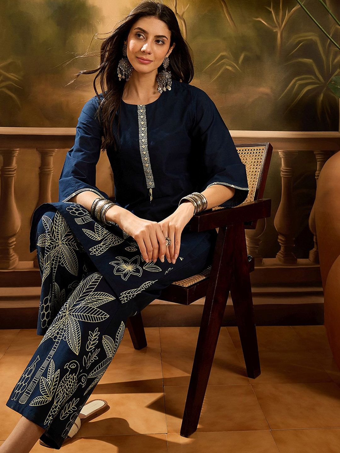Vastramyaa Women Floral Printed Cotton Kurta with Trousers