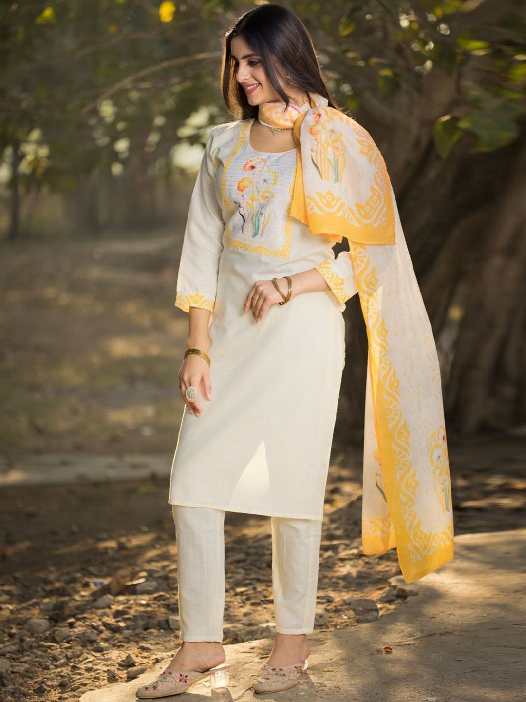 Vastukala Floral Printed Pure Cotton Straight Kurta With Trousers & Dupatta