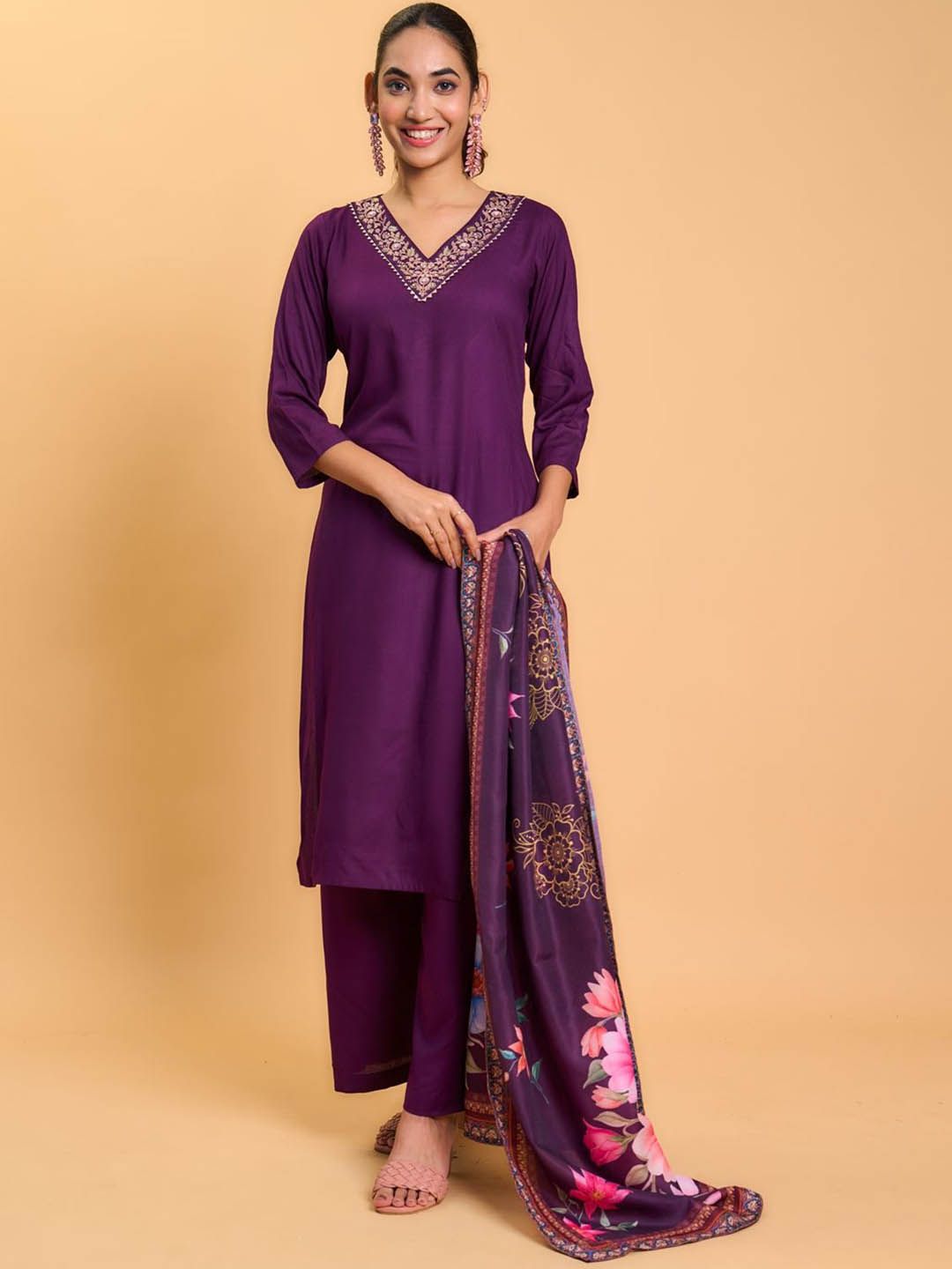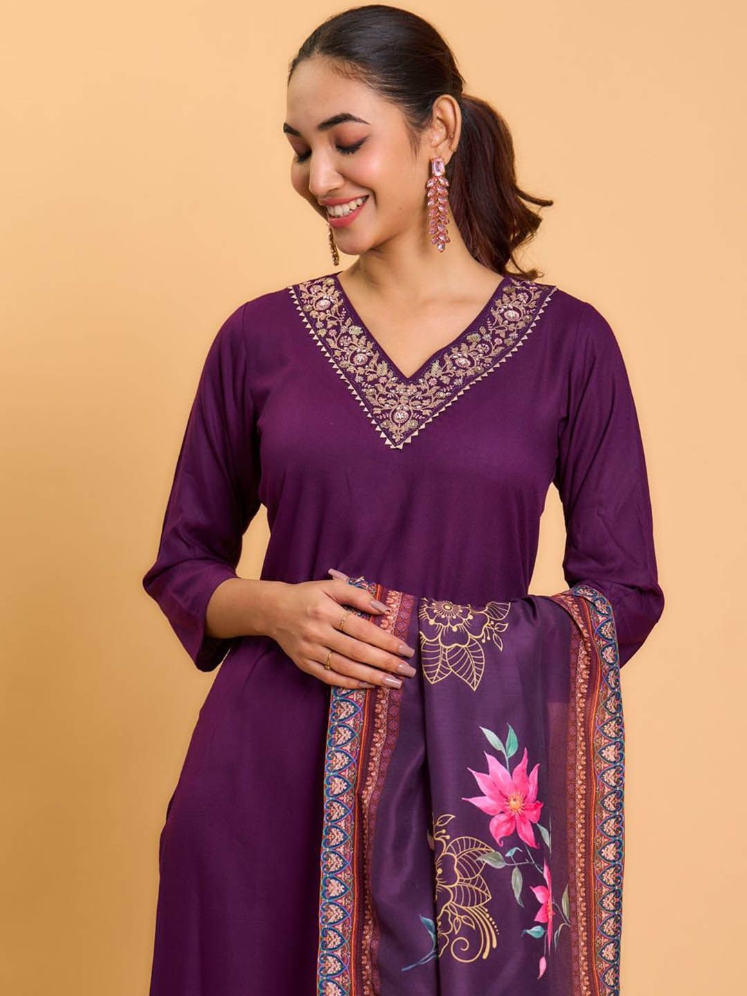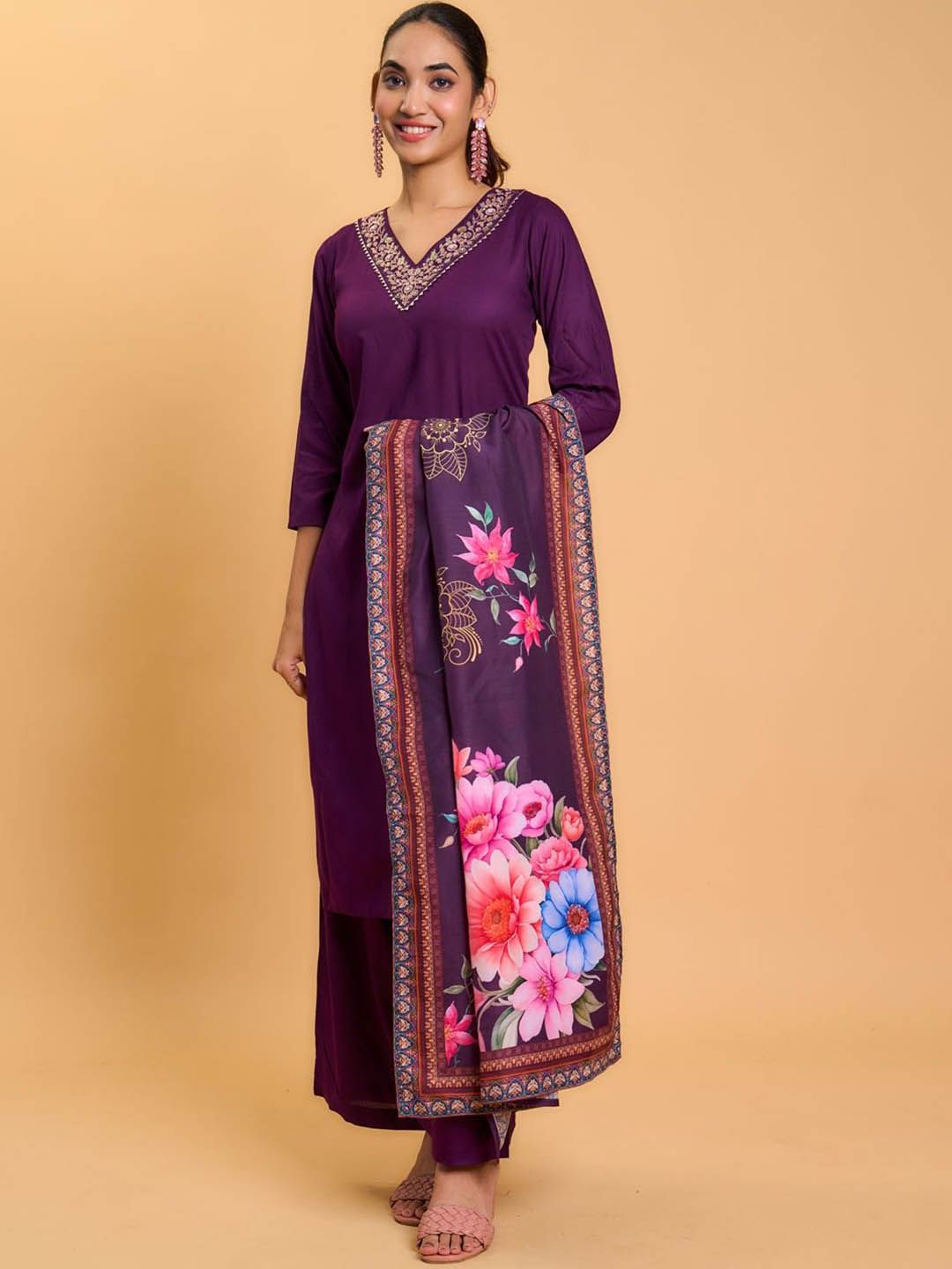 Buy this stylish Vastukala Floral Yoke Design V-Neck Thread Work Straight Kurta With Trousers & Dupatta at Marincart Nepal. This product offers great quality and value. Perfect for those looking for the latest trends in fashion. Get yours now at unbeatable prices.