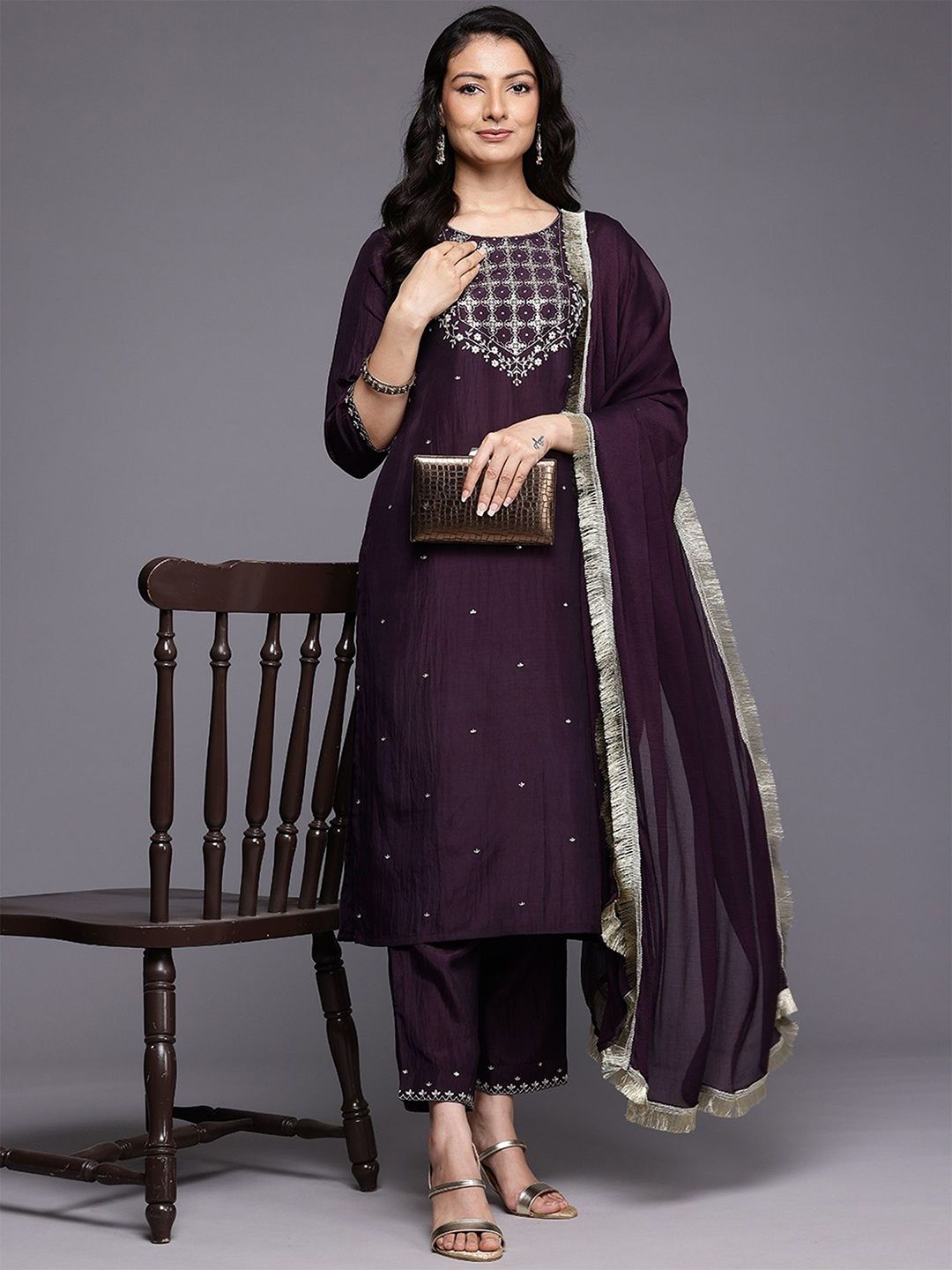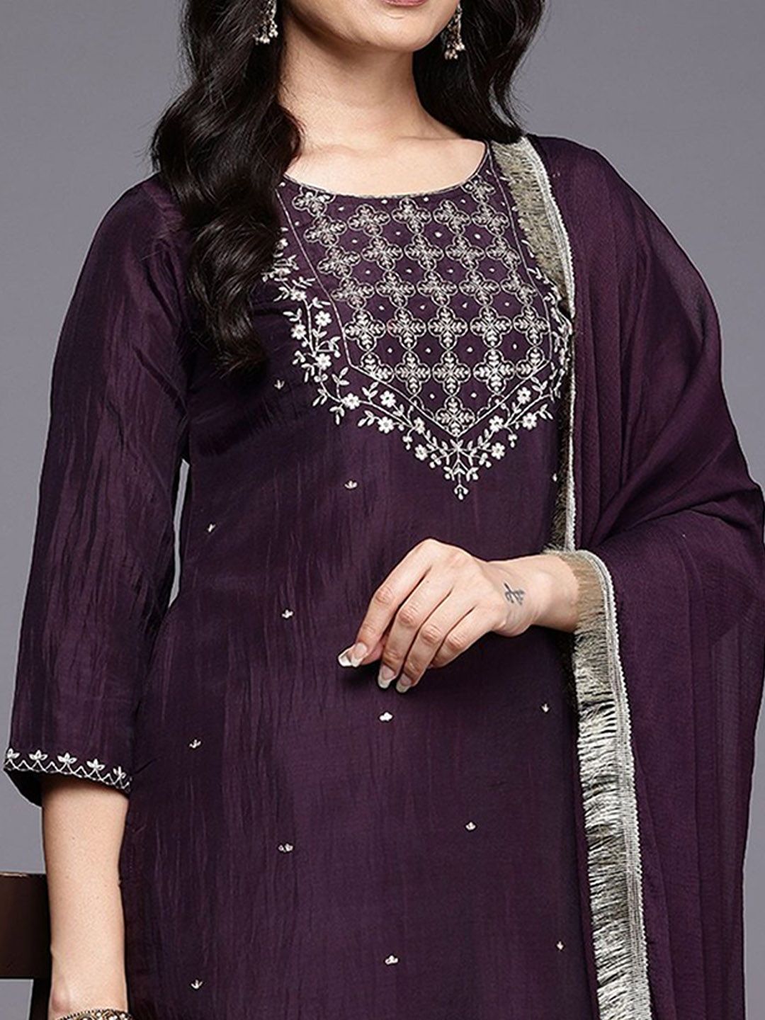 Vastukala Women Ethnic Motifs Embroidered Thread Work Kurta with Trousers & Dupatta