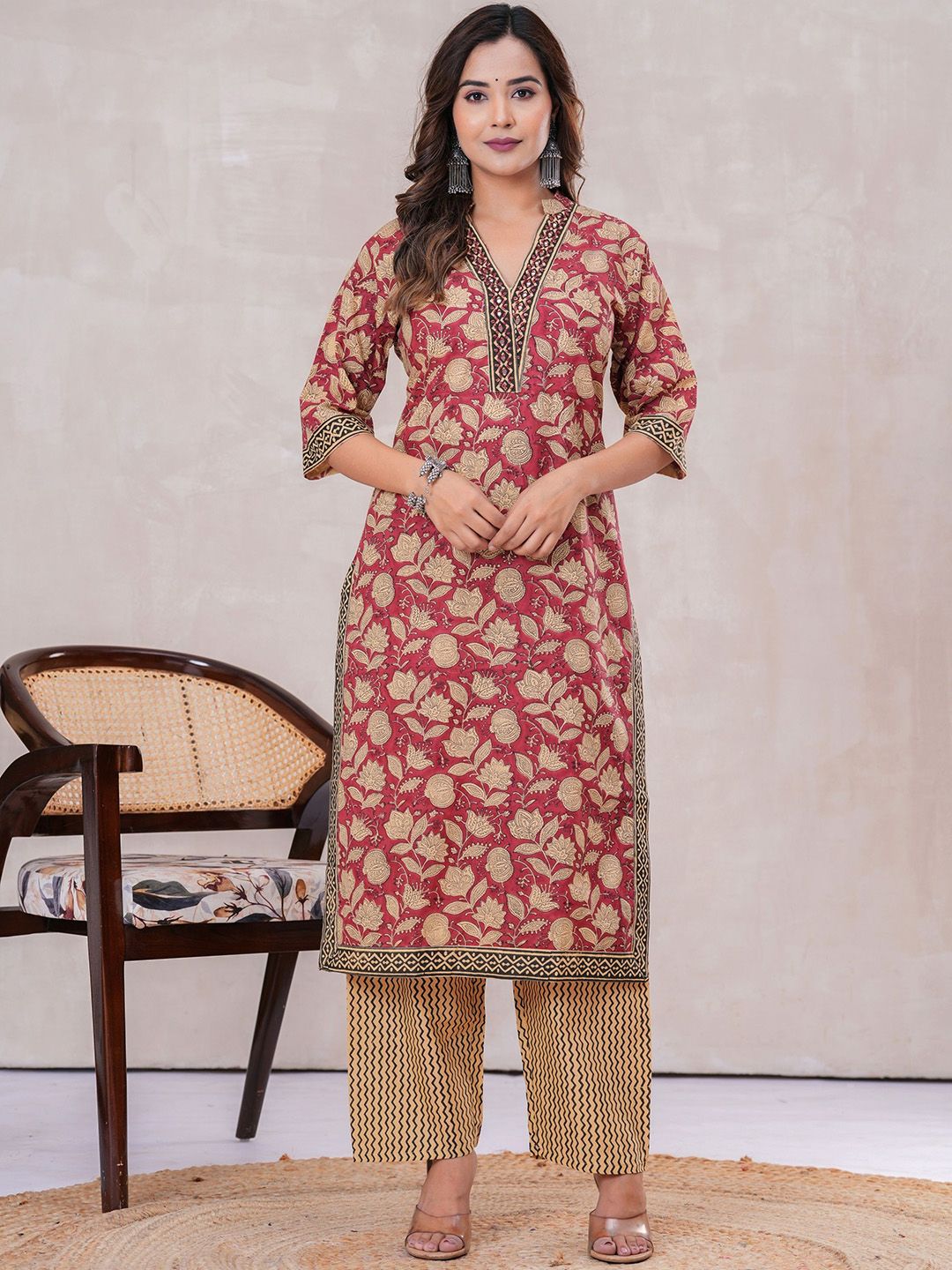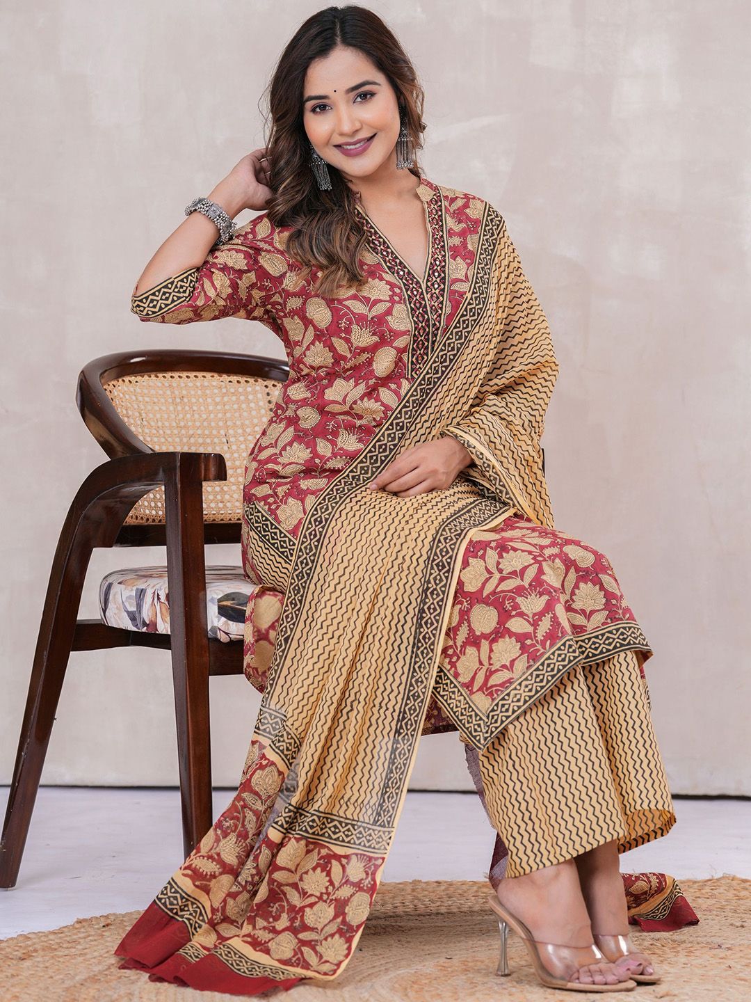 Buy this stylish VASUPRADA Floral Printed V-Neck Mirror Work Pure Cotton Kurta With Trousers & Duptta at Marincart Nepal. This product offers great quality and value. Perfect for those looking for the latest trends in fashion. Get yours now at unbeatable prices.