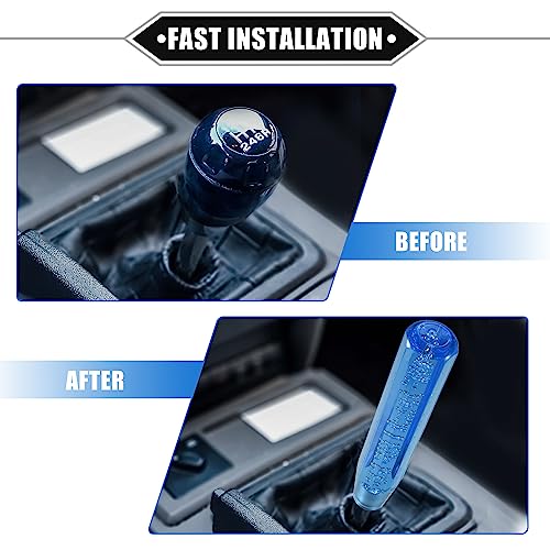 VekAuto Gear Shift Knob Stick, 25cm Faux Crystal Transparent Bubble Gear Shifter Universal for Manual Transmission Vehicle Durable Acrylic Blue with Adapter