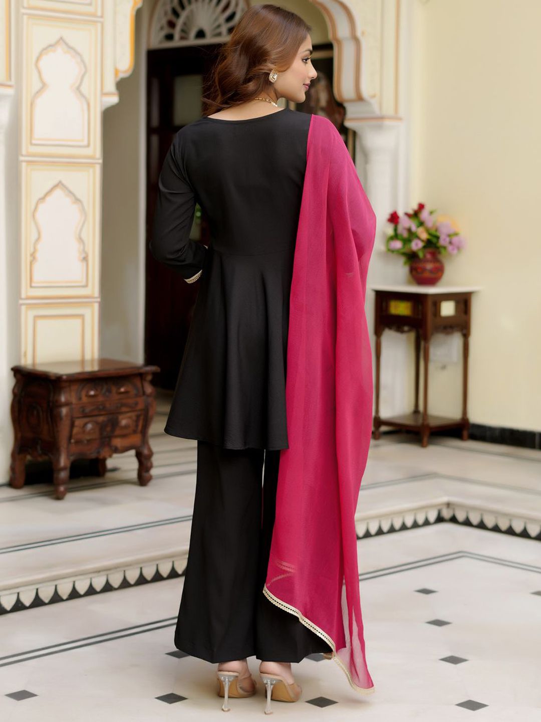 VIBE VISION Women Solid Yoke Design Silk Kurta with Palazzo & Dupatta