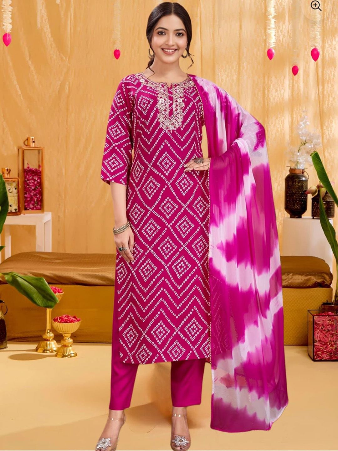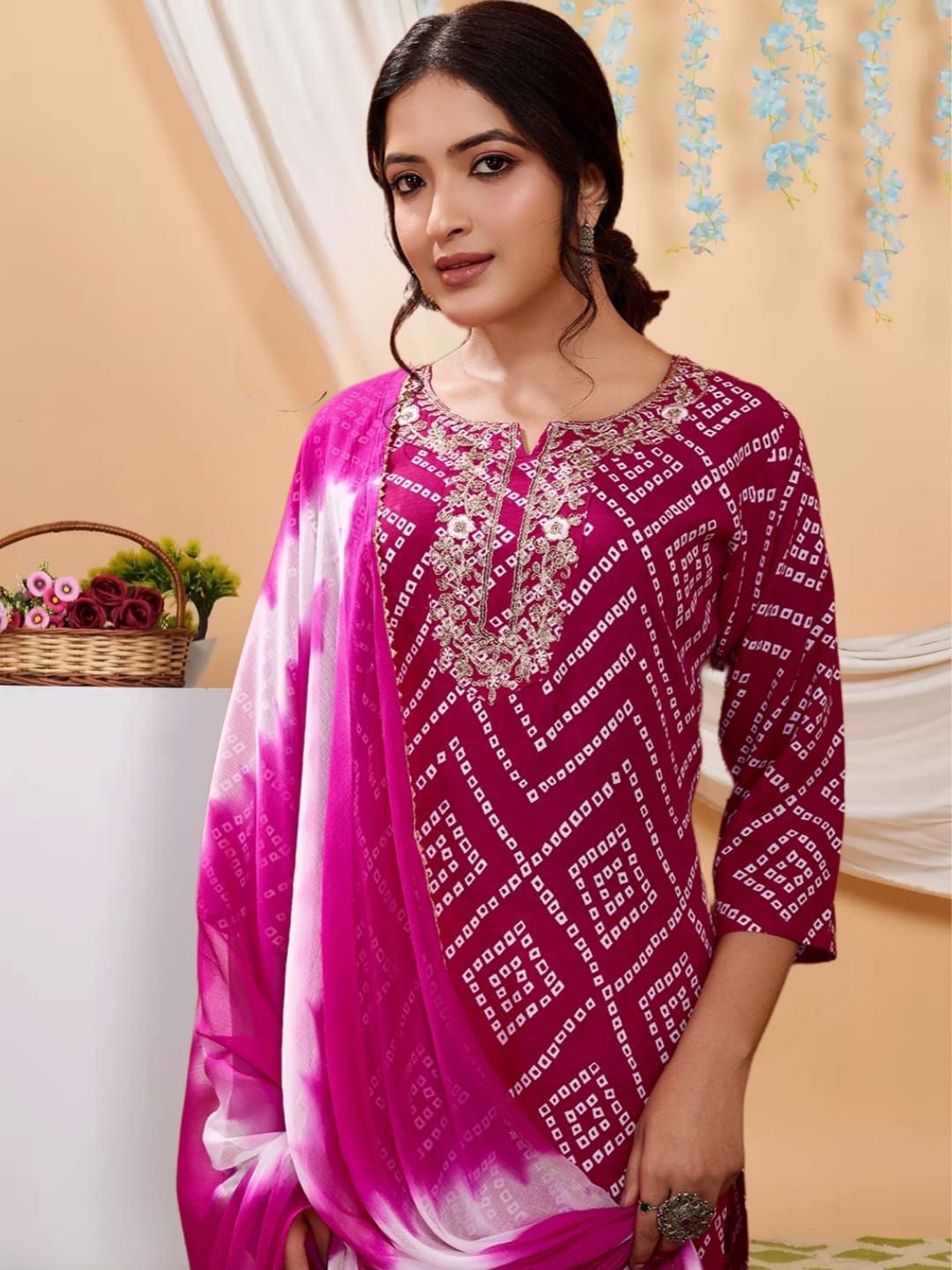 Buy this stylish Vidusha Women Bandhani Printed Gotta Patti Pure Cotton Kurta with Trousers & Dupatta at Marincart Nepal. This product offers great quality and value. Perfect for those looking for the latest trends in fashion. Get yours now at unbeatable prices.