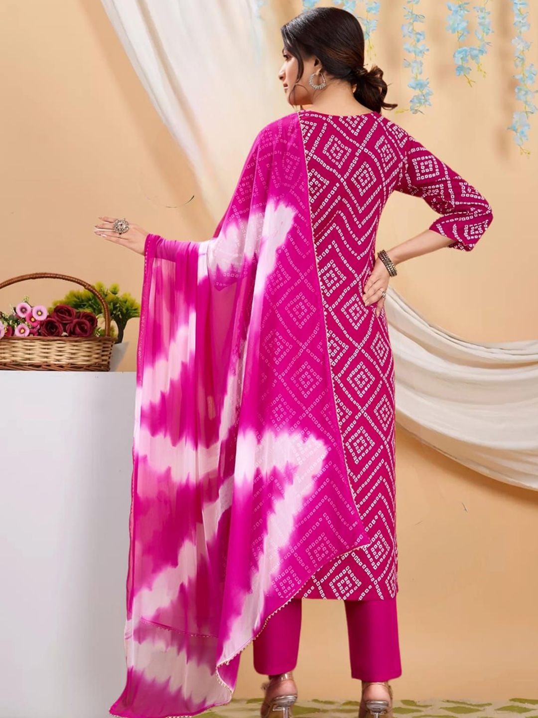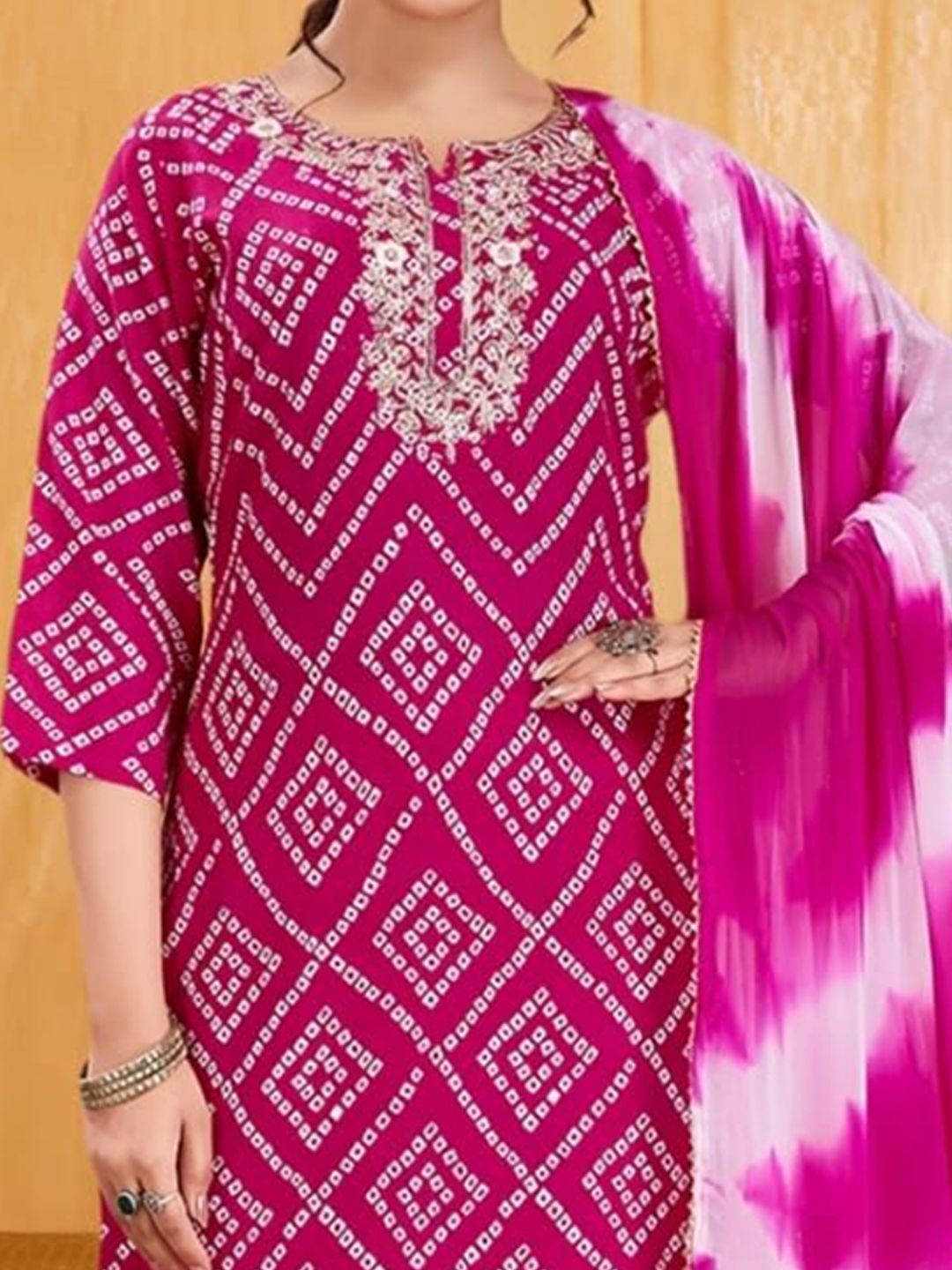 Vidusha Women Bandhani Printed Regular Sequinned Pure Cotton Kurta Set