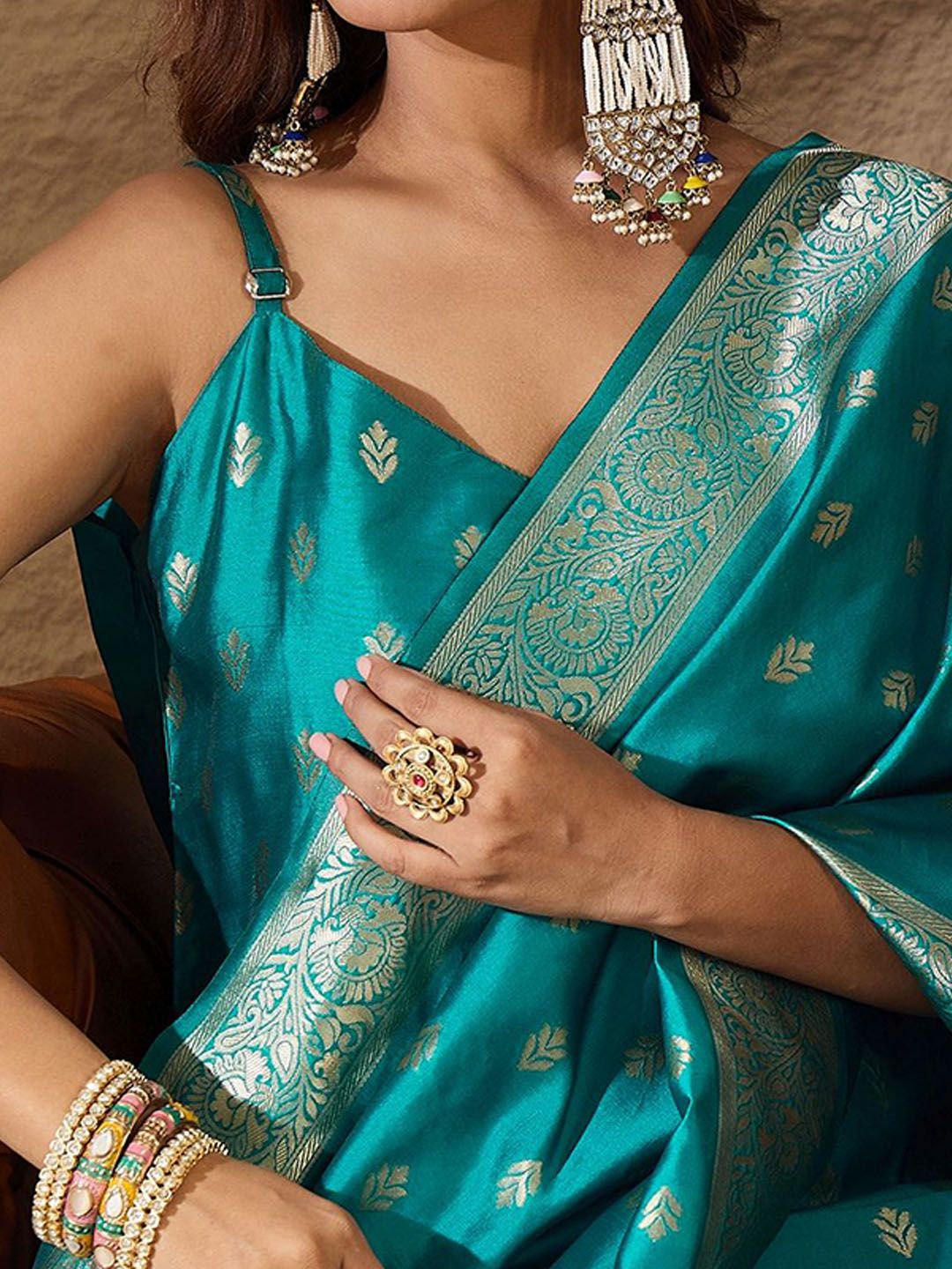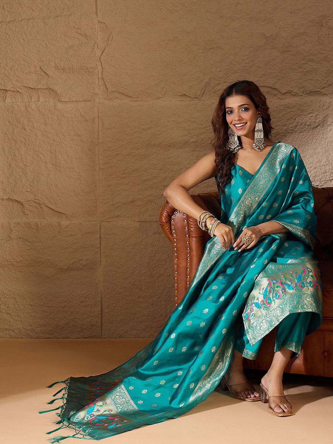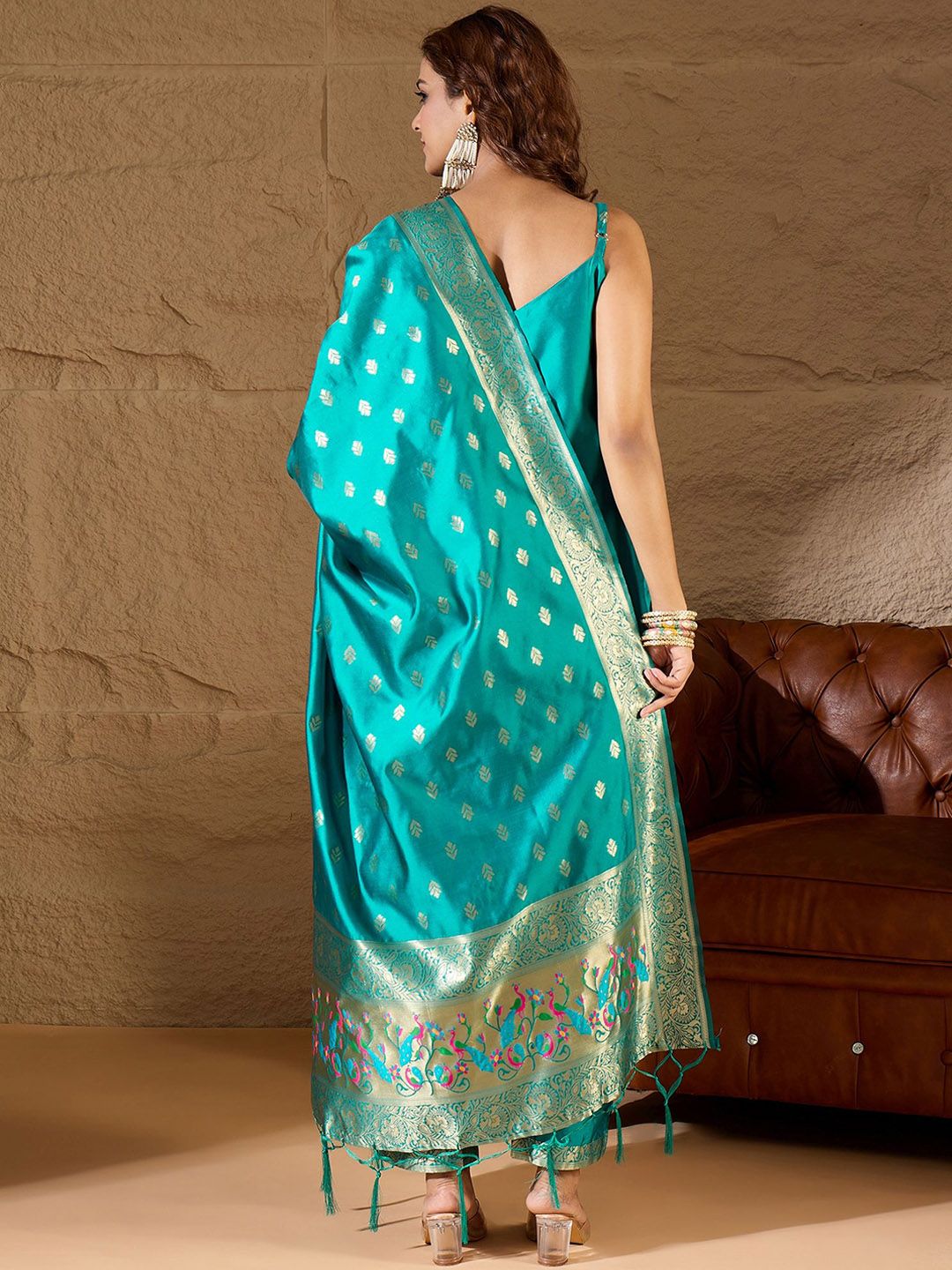 VredeVogel Ethnic Motifs Woven Design Sleeveless Zari Kurta With Trousers & Dupatta