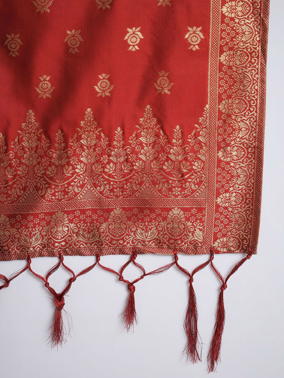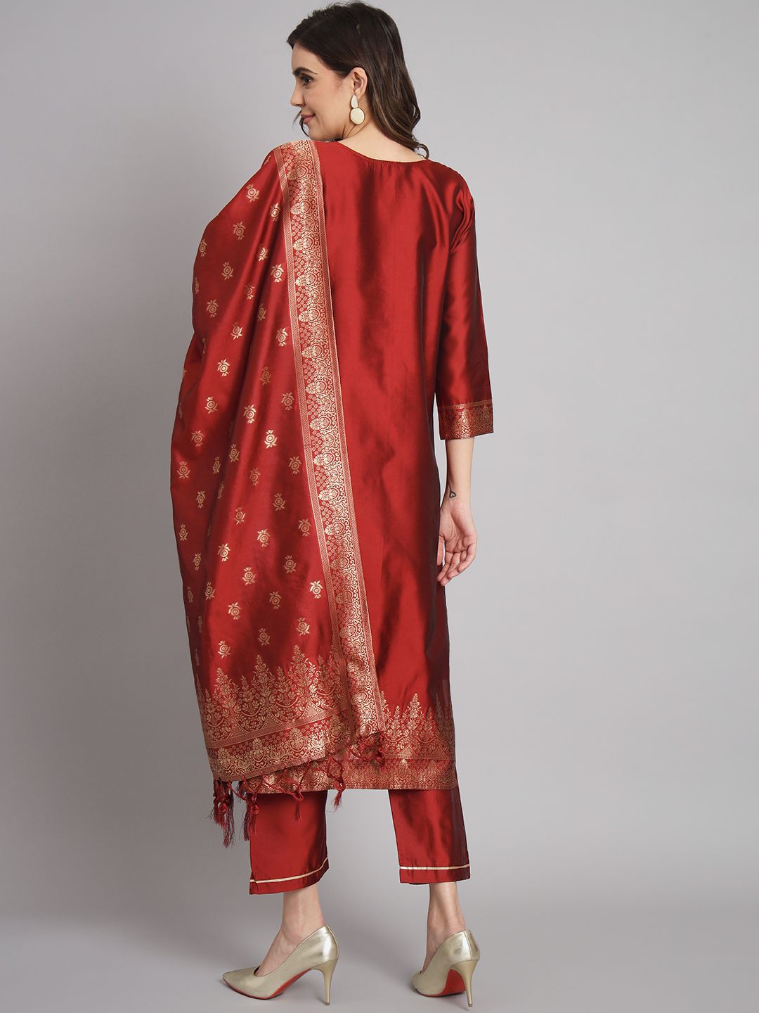 VredeVogel Ethnic Motifs Woven Design Zari Cotton Silk Kurta With Trousers & Dupatta
