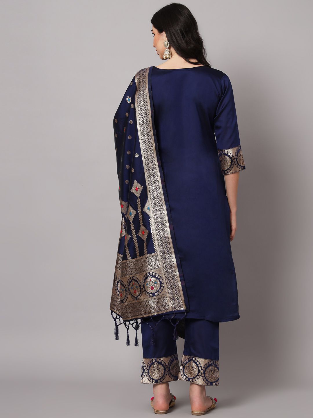 VredeVogel Ethnic Motifs Woven Design Zari Cotton Silk Kurta With Trousers & Dupatta