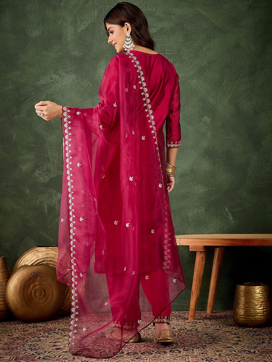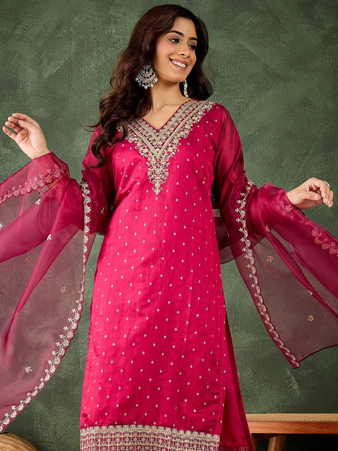 VredeVogel Floral Embroidered Sequinned Kurta With Trousers & Dupatta