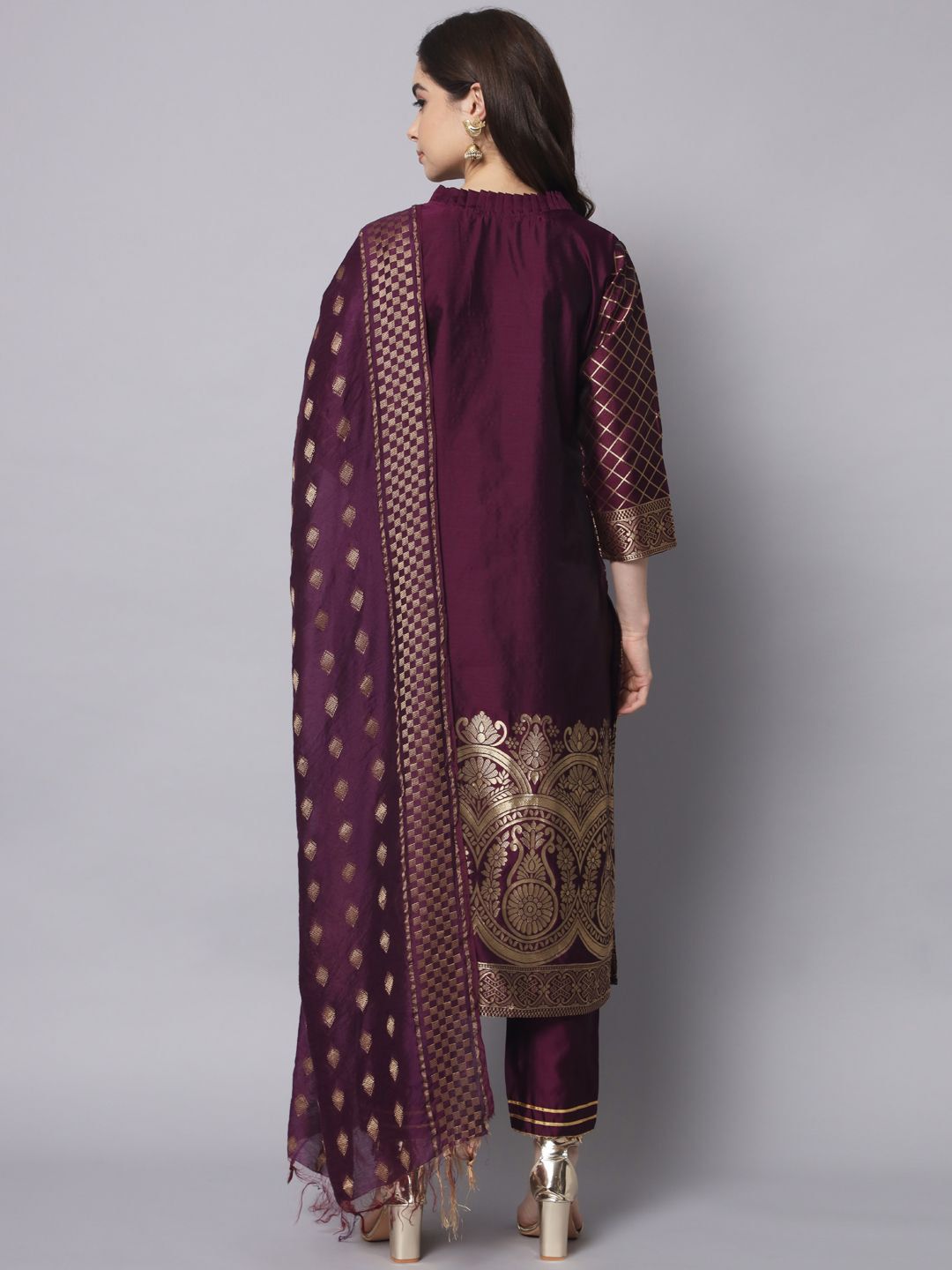 VredeVogel Floral Woven Design Cotton Silk Straight Kurta With Trousers & Dupatta
