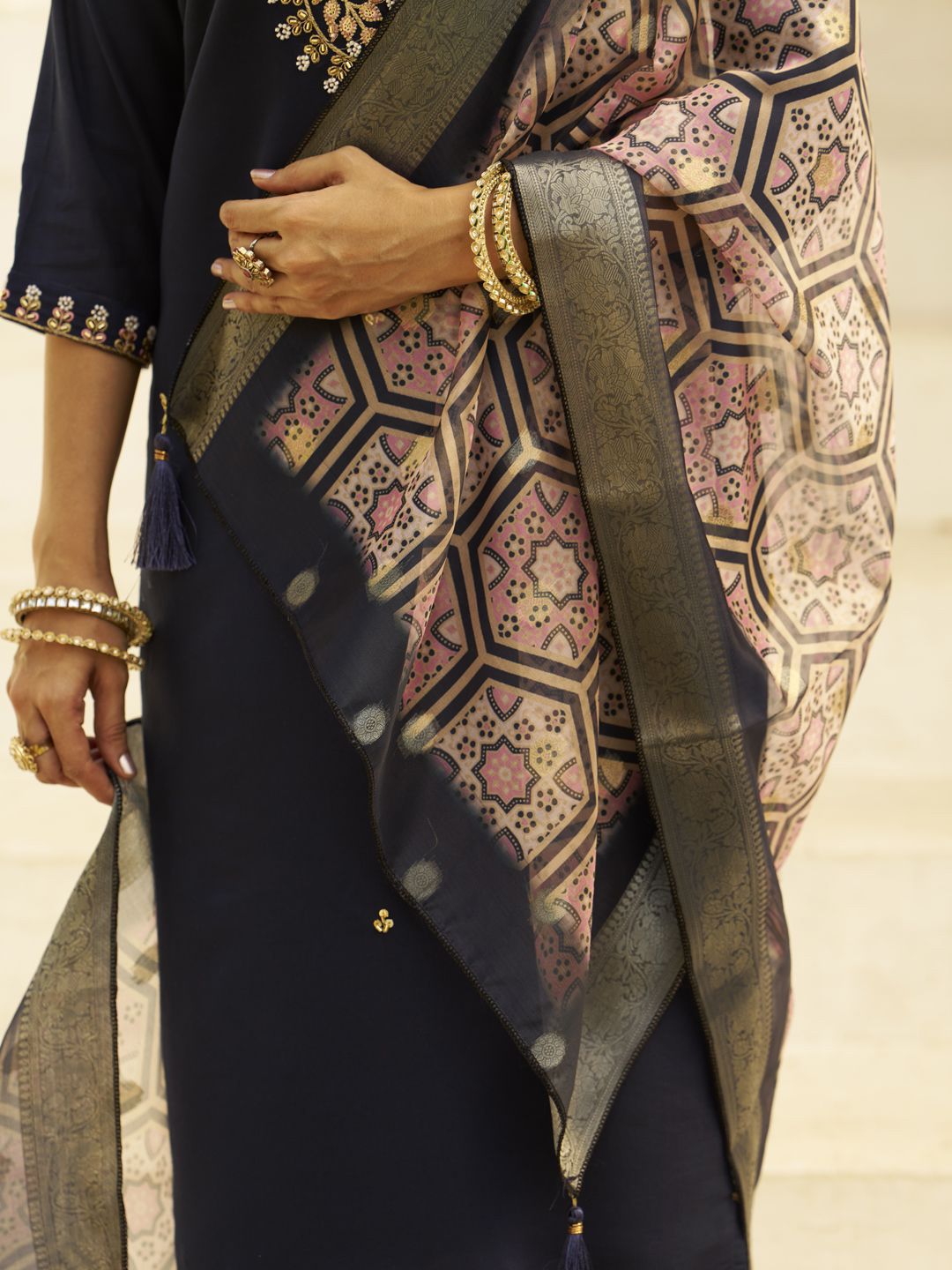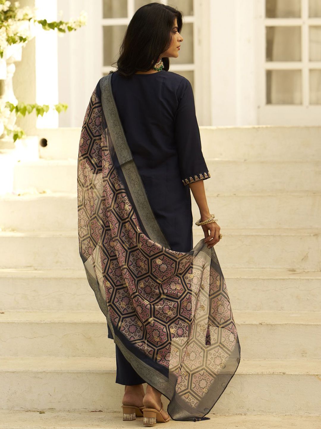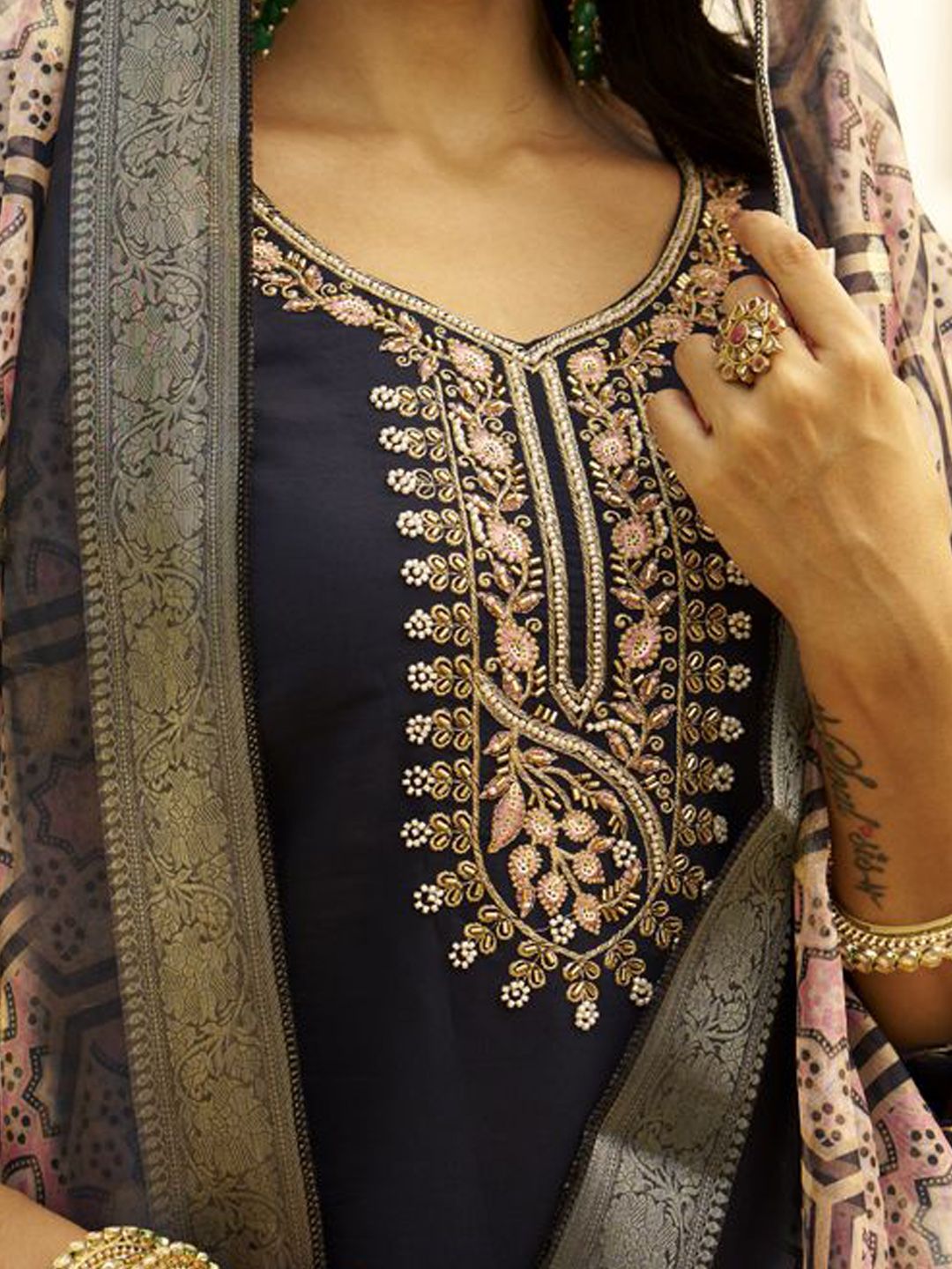 VredeVogel Women Ethnic Motif Embroidered Thread Work Kurta with Trousers & Dupatta