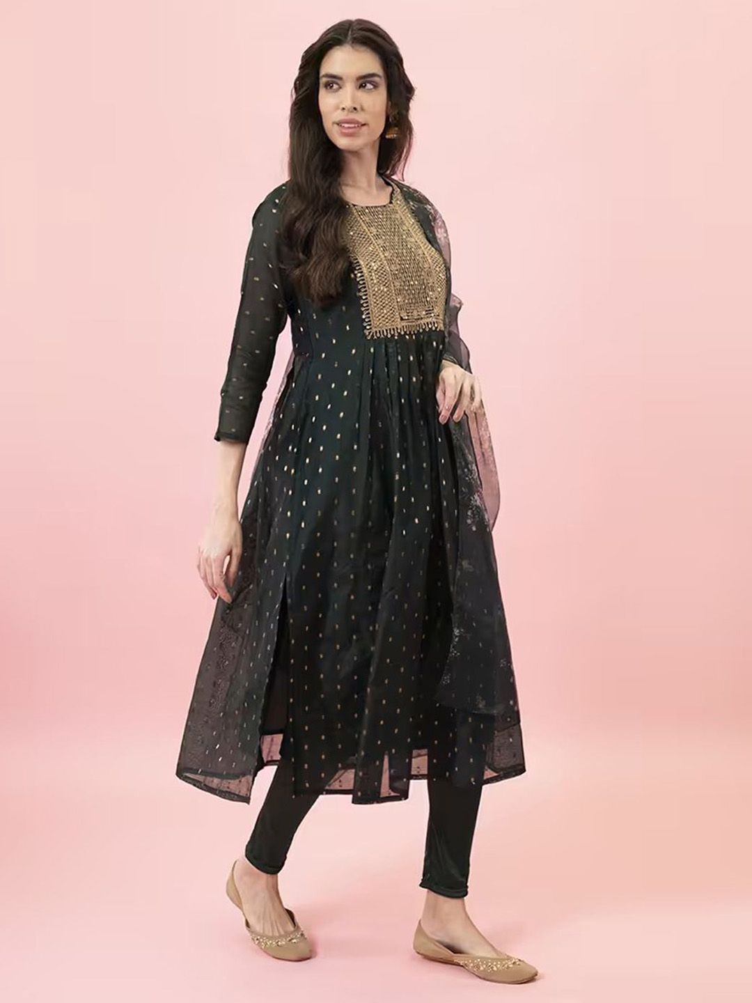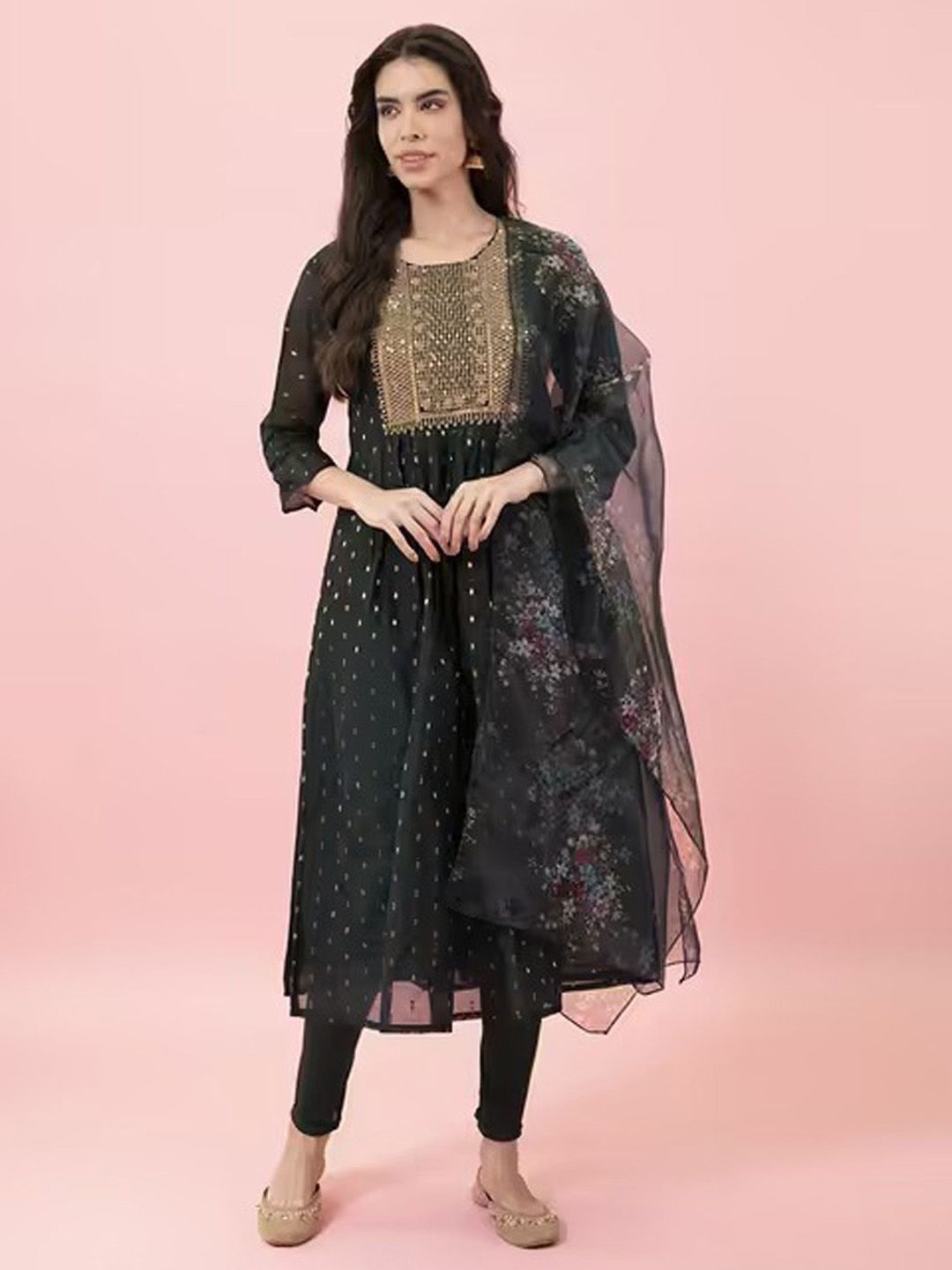 Buy this stylish VredeVogel Women Ethnic Motifs Embroidered A-Line Kurta with Leggings & Dupatta at Marincart Nepal. This product offers great quality and value. Perfect for those looking for the latest trends in fashion. Get yours now at unbeatable prices.