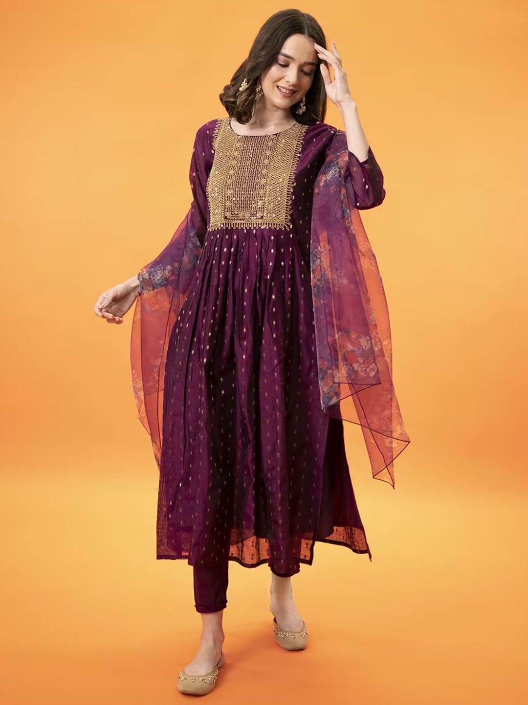 VredeVogel Women Ethnic Motifs Embroidered Anarkali Kurta with Leggings & Dupatta