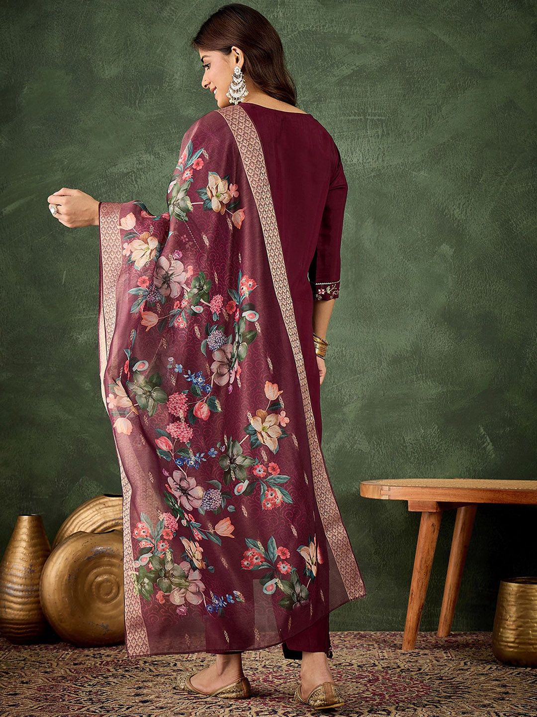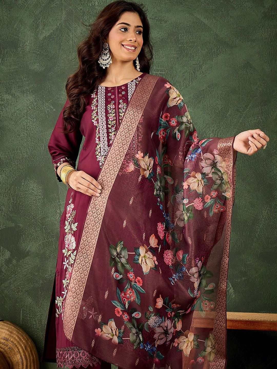 VredeVogel Women Ethnic Motifs Embroidered Kurta Pant with Dupatta Set