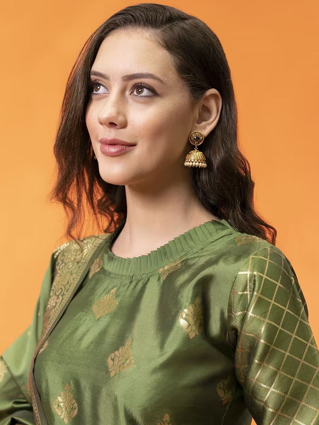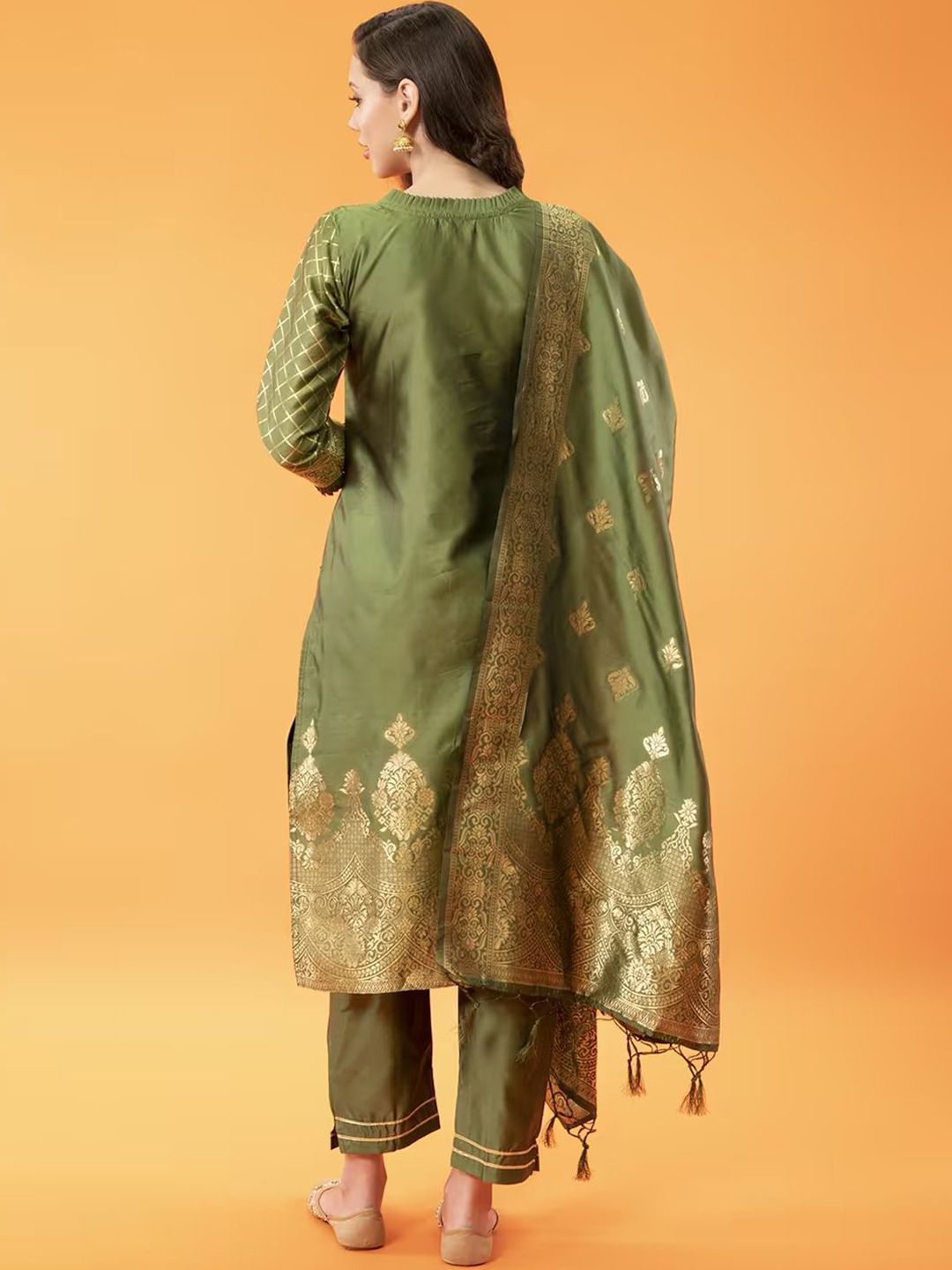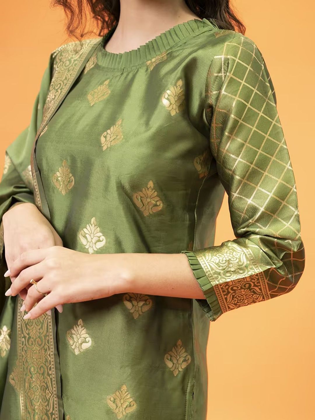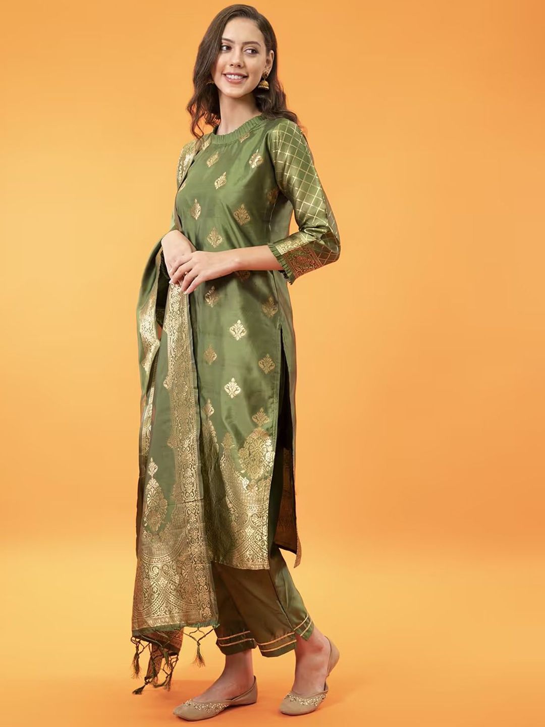 VredeVogel Women Ethnic Motifs Woven Design High Neck Jacquard Weave Cotton Silk Kurta Set