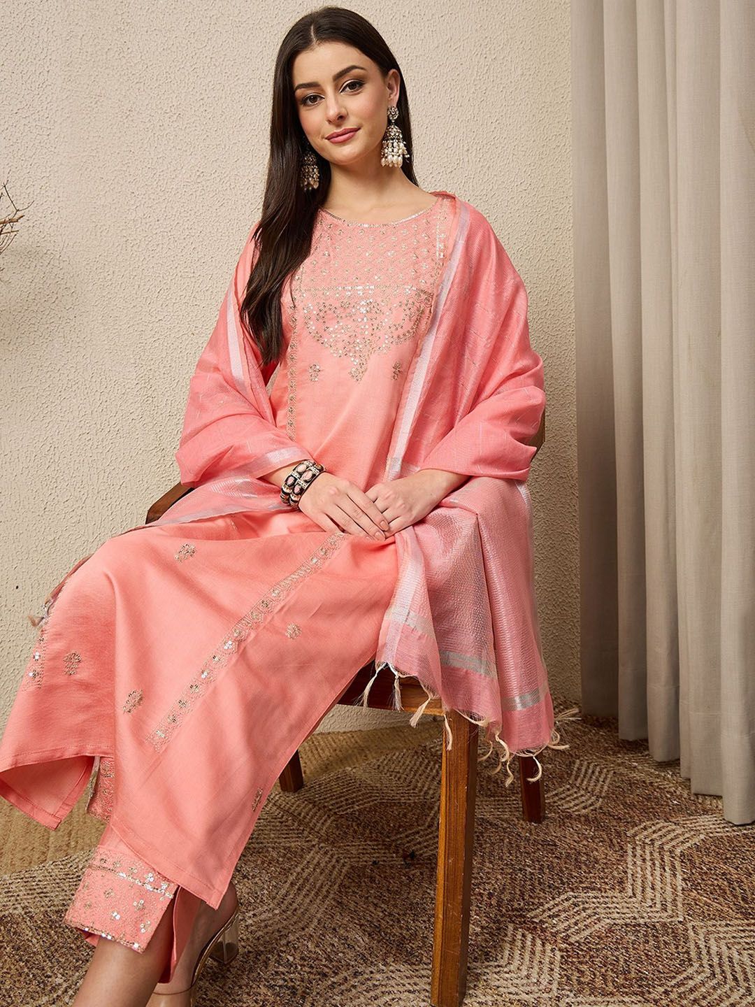 Buy this stylish VredeVogel Women Floral Embroidered Regular Sequinned Kurta with Trousers & With Dupatta at Marincart Nepal. This product offers great quality and value. Perfect for those looking for the latest trends in fashion. Get yours now at unbeatable prices.