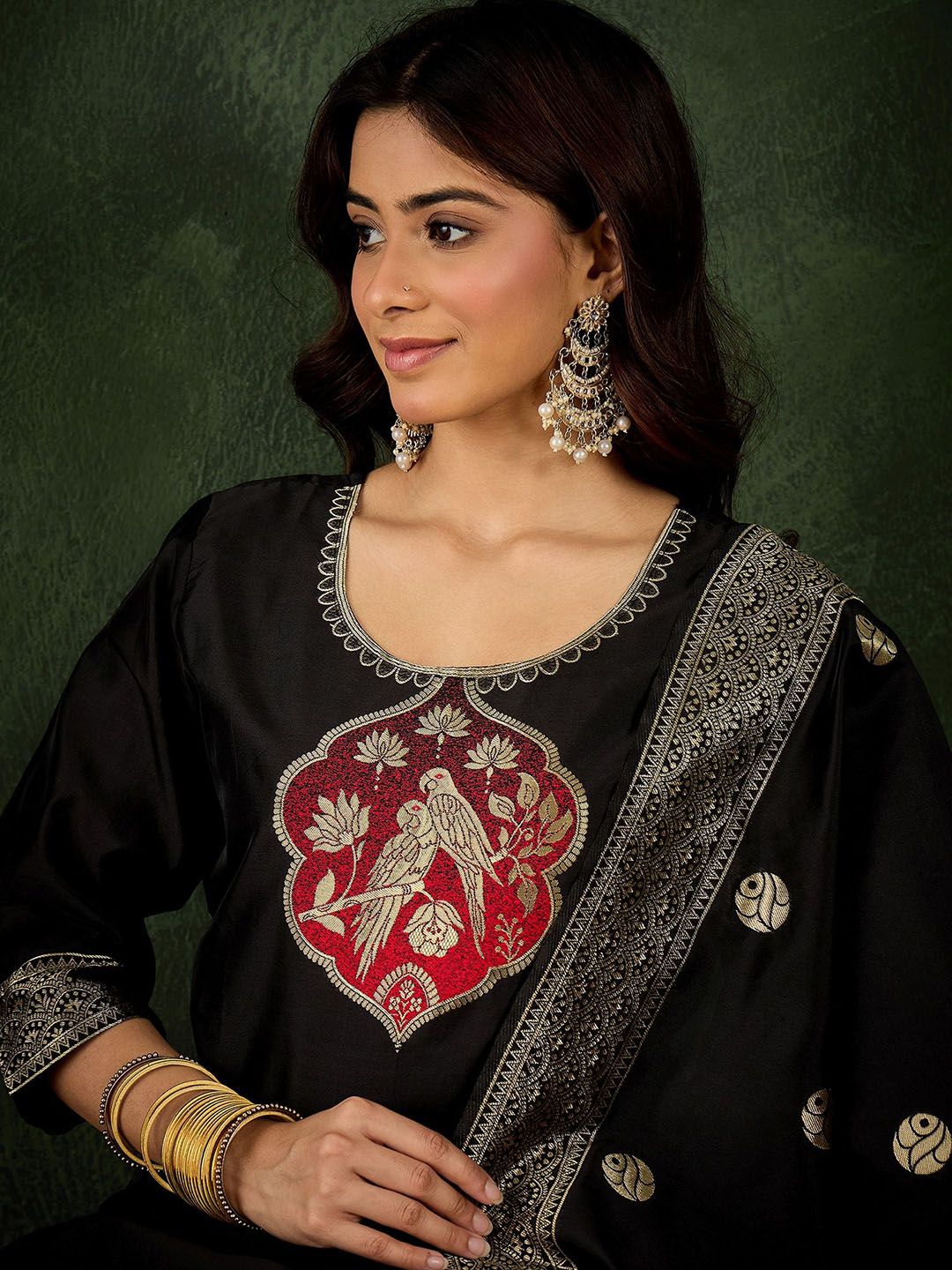 VredeVogel Women Floral Regular Straight Banarasi Kurta with Trousers & With Dupatta