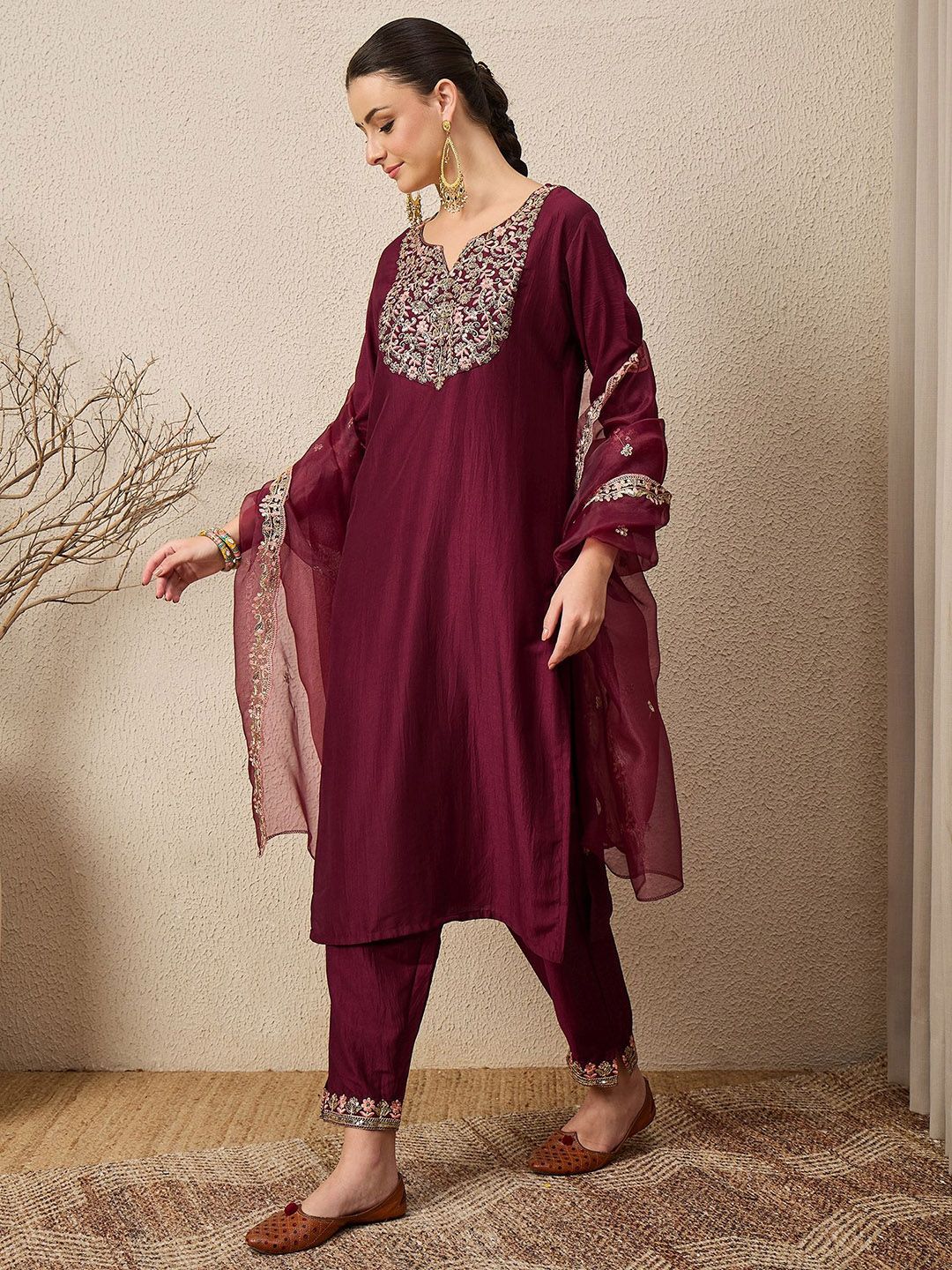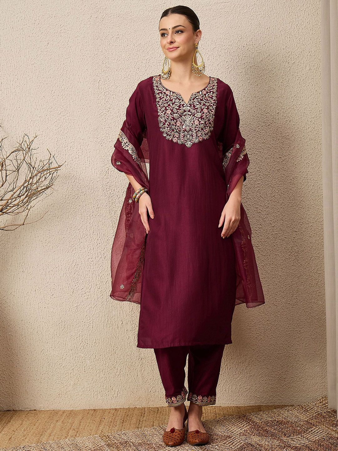 Buy this stylish VredeVogel Women Floral Yoke Design Regular Sequinned Kurta with Trousers & Dupatta at Marincart Nepal. This product offers great quality and value. Perfect for those looking for the latest trends in fashion. Get yours now at unbeatable prices.