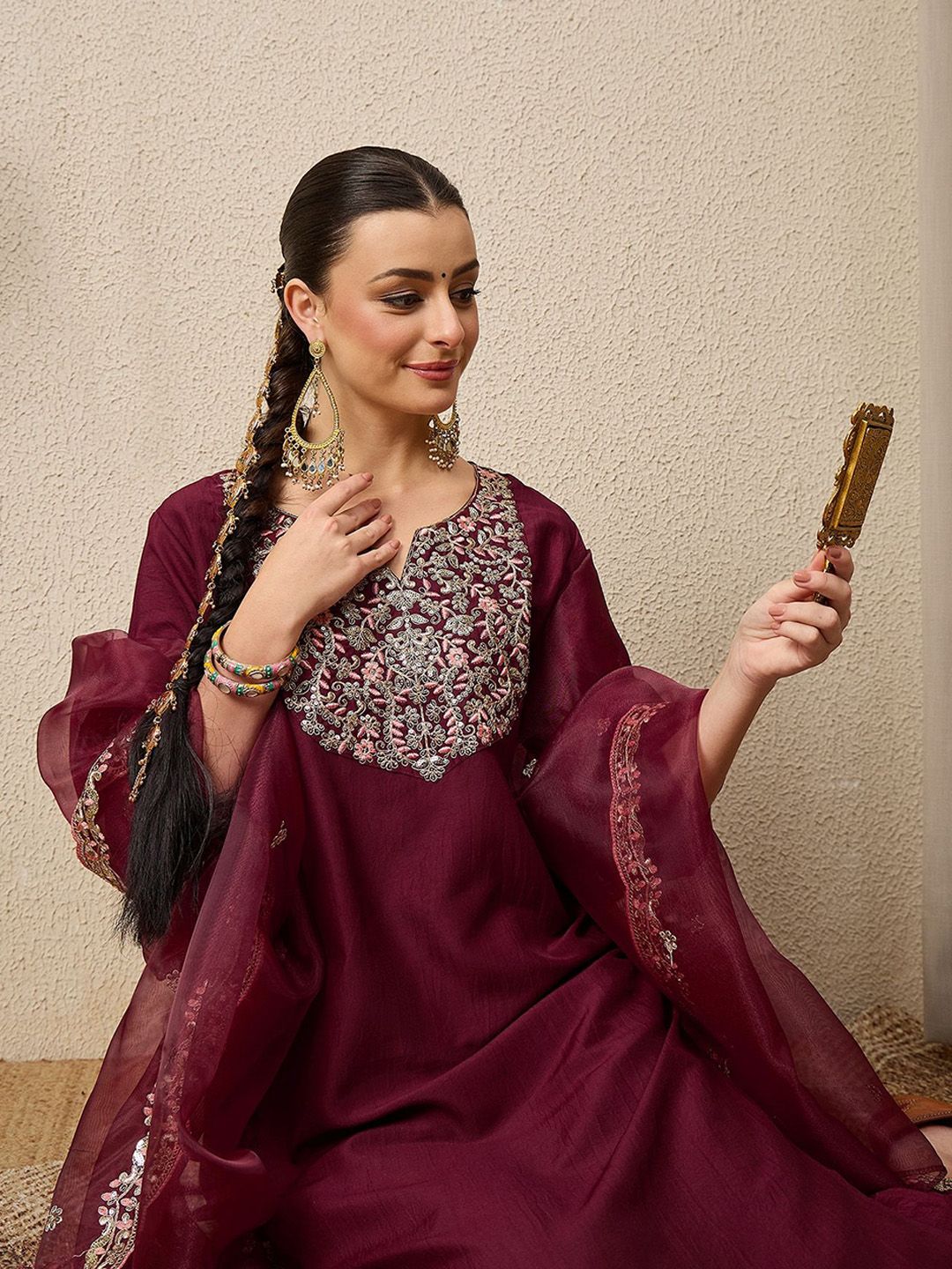 VredeVogel Women Floral Yoke Design Regular Sequinned Kurta with Trousers & Dupatta