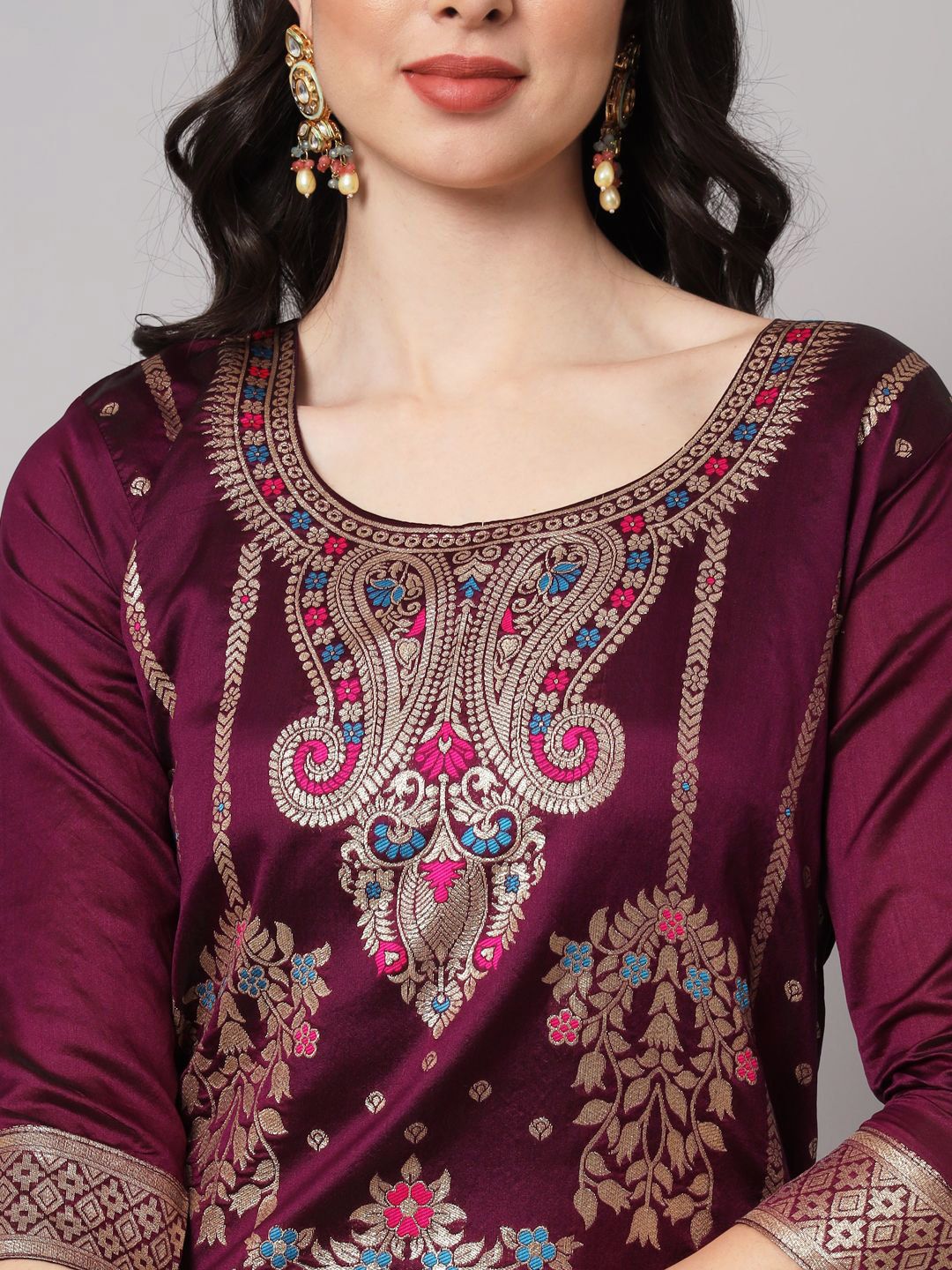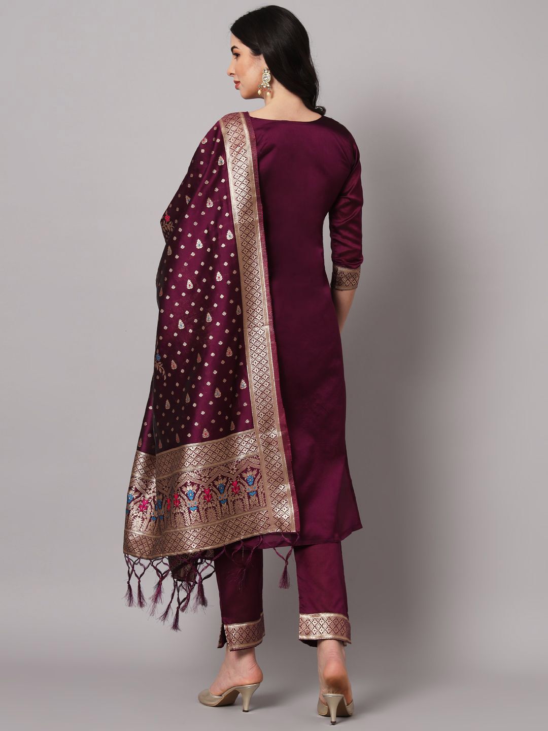 VredeVogel Women's Cotton Silk Jacquard Kurta Pant Set with Dupatta
