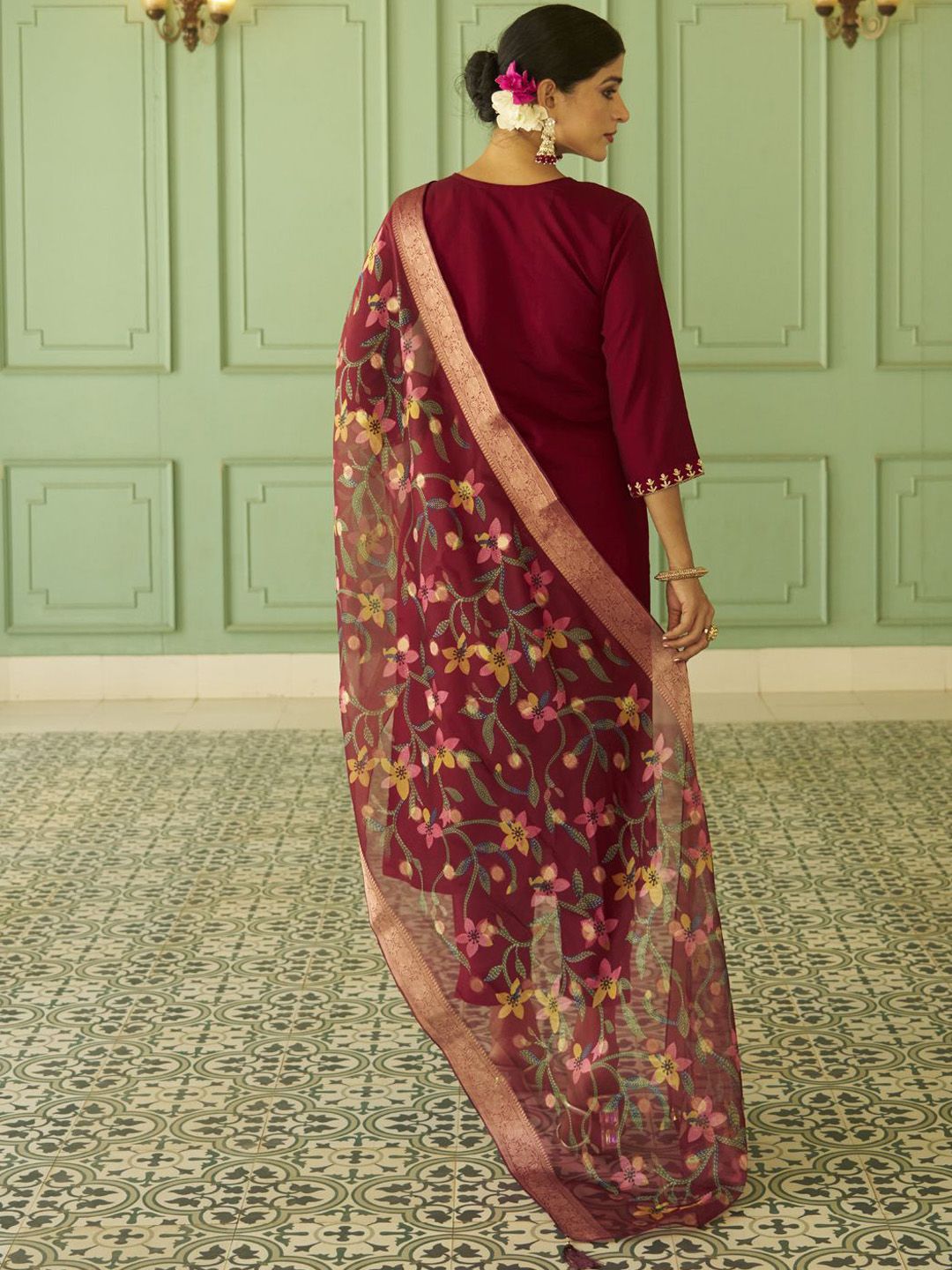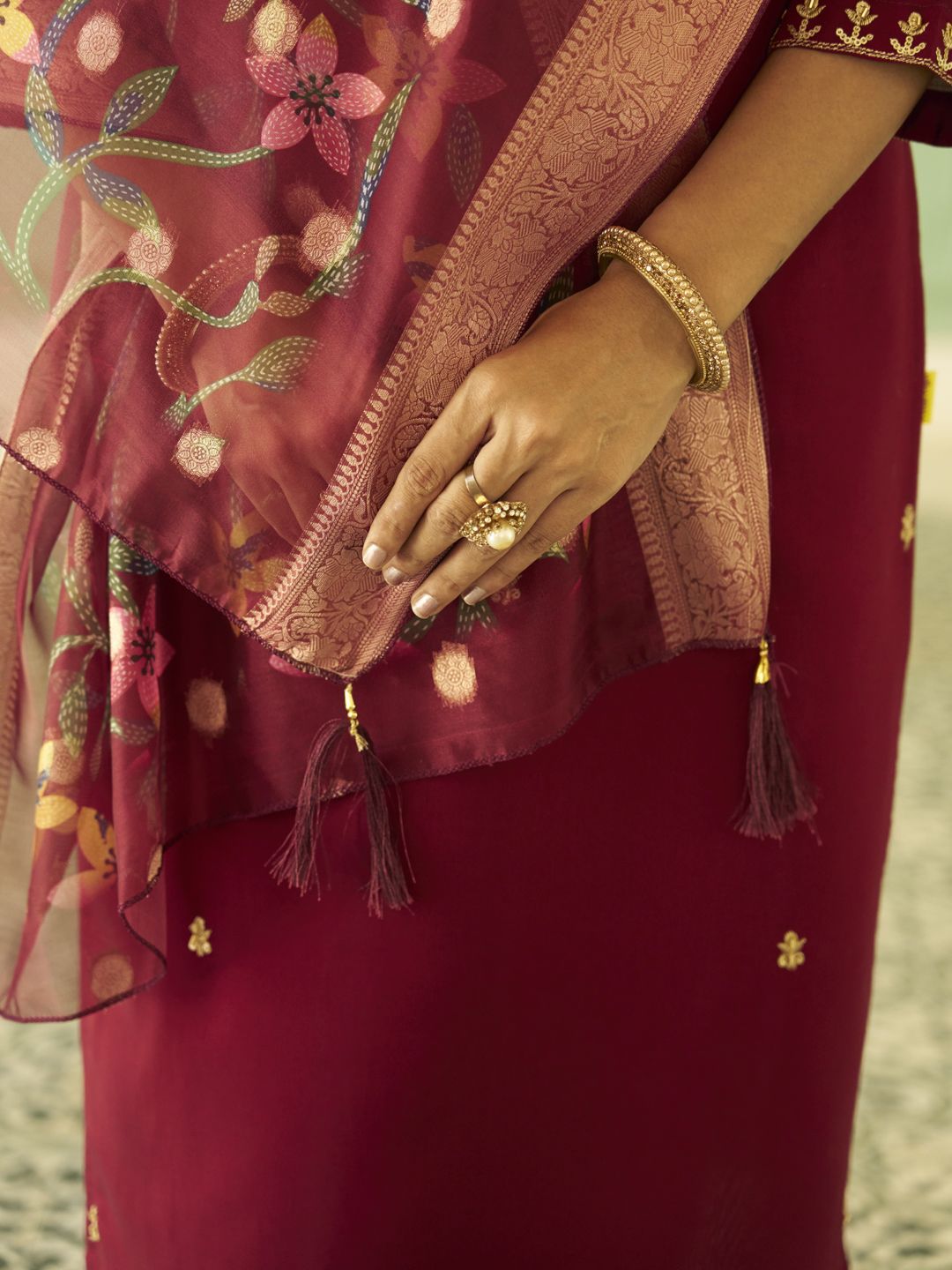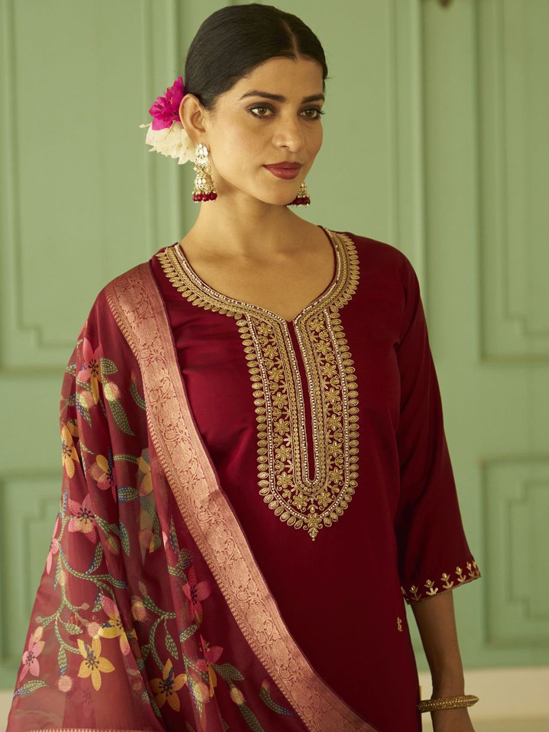 VredeVogel Women's Embroidered Silk Blend Kurta Pant Set with Dupatta