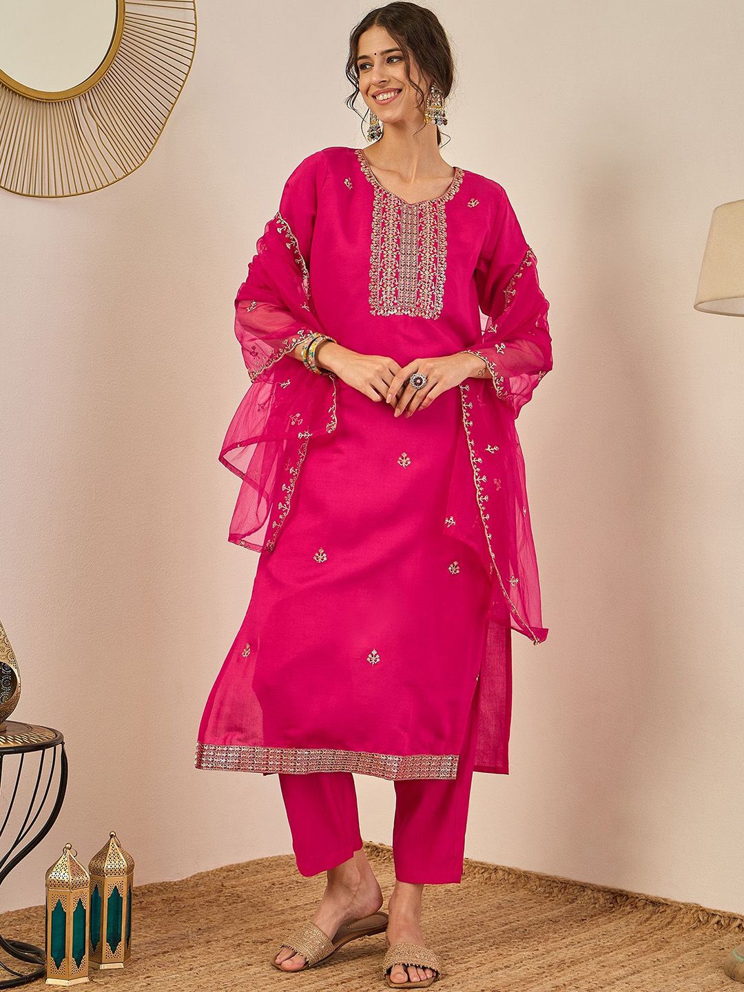 Buy this stylish VredeVogel Women's Floral Embroidered Regular Sequin Work Kurta With Trouser & Dupatta at Marincart Nepal. This product offers great quality and value. Perfect for those looking for the latest trends in fashion. Get yours now at unbeatable prices.