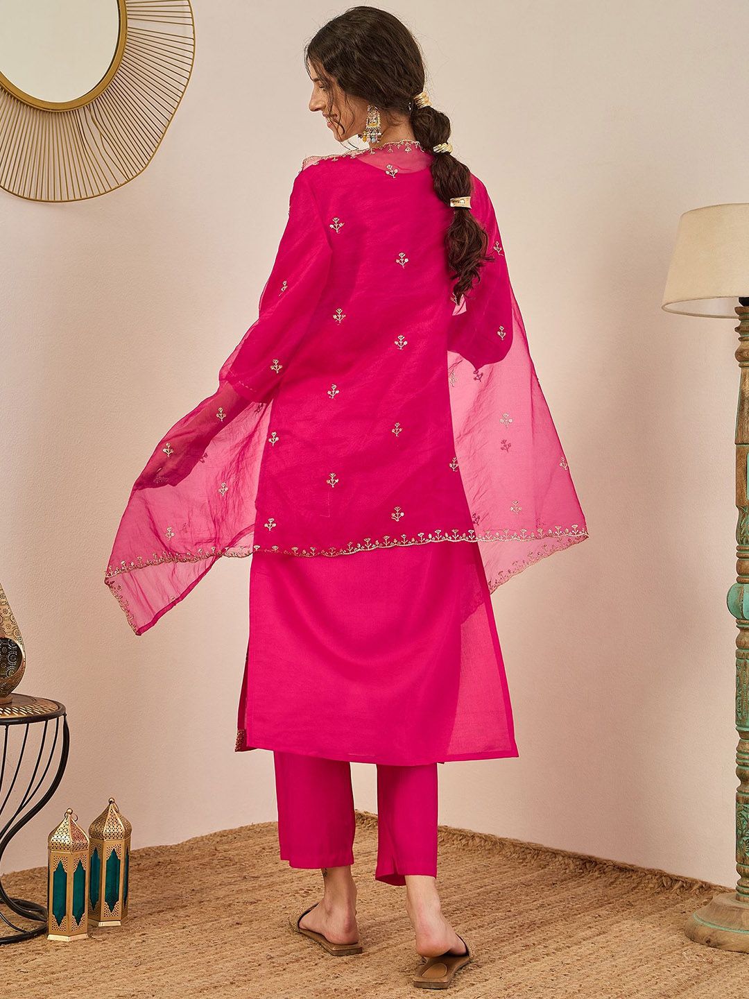 VredeVogel Women's Floral Embroidered Regular Sequin Work Kurta With Trouser & Dupatta