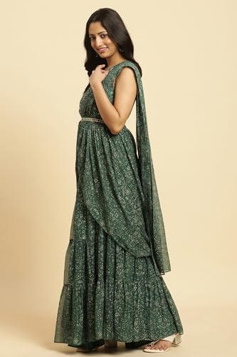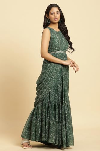 W for Woman Ankle Length Foil Printed Chiffon Sharara Saree Dress for Women