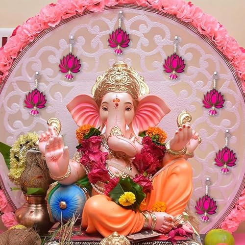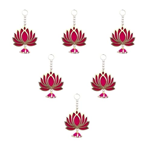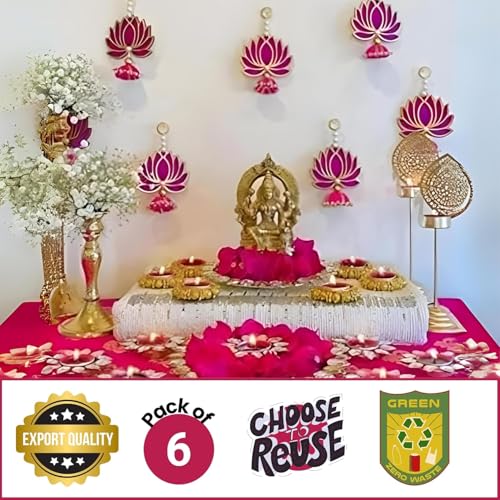 FESTIVE WALL DECOR: Elegant lotus with jhumki-style hanging perfect for Diwali, weddings, pooja, and festivals. PREMIUM EXPORT QUALITY: Crafted from durable, high-grade materials for a long-lasting and luxurious finish. RICH PINK COLOR: The vibrant Pink/Raani shade adds a traditional, royal feel to your home or pooja décor. EASY TO HANG: Lightweight design with attached hanging loops – ideal for walls, doors, balconies, or temples. VERSATILE DECOR ITEM: Perfect for temple decoration, event backdrop, entrance arches, or gift hampers. REUSABLE & DURABLE: Designed for repeated festive use – easy to store and maintain after every occasion. SET OF 6 PIECES: Includes 6 matching lotus hangings for cohesive decoration across your space.