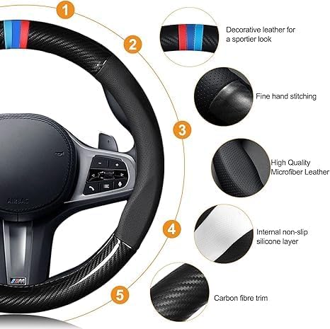 ?Soft & Comfortable?: Made of soft and comfortable fabric, the surface is delicate to touch. And it is very wear-resistant, which can help you maintain a comfortable hand temperature even in winter. After a special process, it is wear-resistant, dirt-resistant and durable. ?Anti-Slip Function?: Unique anti-slip design ensures that your steering wheel cover is not easy to slide during driving, making your driving safer. Excellent anti-slip performance makes this product can well protect your driving safety, enhance the friction and comfortable grip, so that you can avoid the sweaty hands lead to slippery situation. ?Protect Steering Wheel?: After use, it not only protects the original steering wheel, but also ensures that your hands don't freeze in the winter and don't get hot in the summer, ensuring your driving comfort. You can always keep your palms dry and non-sticky during long driving. ?Wide Application?: Selected fabrics with delicate patterns, simple and classic design, fits 99% of car models. Widely used in cars, vans, SUVs, pickup trucks, crossovers. But we still recommend you to measure the size before purchase to ensure your happy shopping experience. ?Perfect Gift?: This product is very delicate and fashionable, the plush soft texture and can be used as a fashionable and exquisite gift for your family or friends who are new drivers.