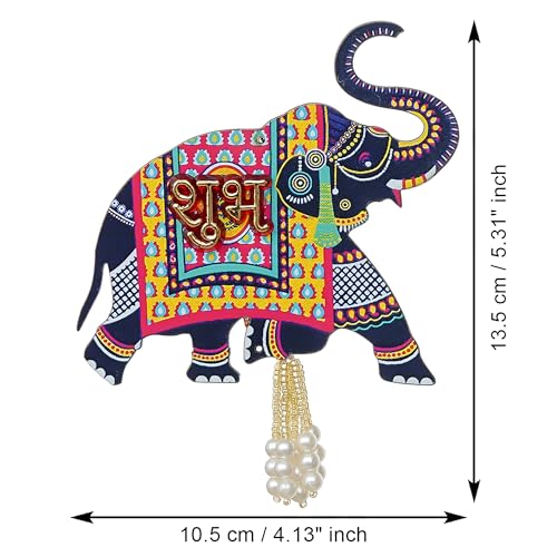 Webelkart Premium Elephant Designer Set of 2 with Shubh Labh Wall Hanging for Diwali Decoration| Wall Decor |Temple Decor Wall Hanging |Pooja and Home Decor Hanging (5.5" Inches)