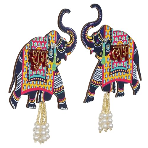 Package contents: Pack Of 2 Elephant Decorative Wall Hanging Temple Hanging For Home And Office Decor : Multi-color,Material: Wood 5.5"Inches Handcrafted Wall Hanging For Decoration in Home Temple Mandir Office Shop Counter Decorative ShowPiece Marriage Wedding Return Gift, Diwali Decoration, House Warming Gift. Elephant Set Of 2 wall hanging for ganpati decoration, gauri decoration and Diwali decoration for festivals Wall Decor Hanging