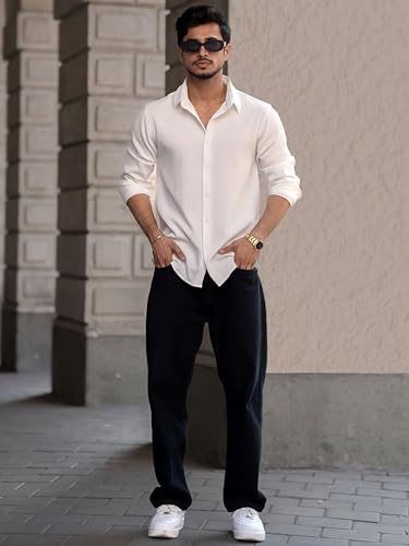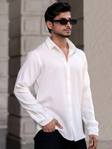 WEBRIC Men's Regular Fit Solid Soft Touch Polyester Casual Shirt Design with Spread Collar & Full Sleeves