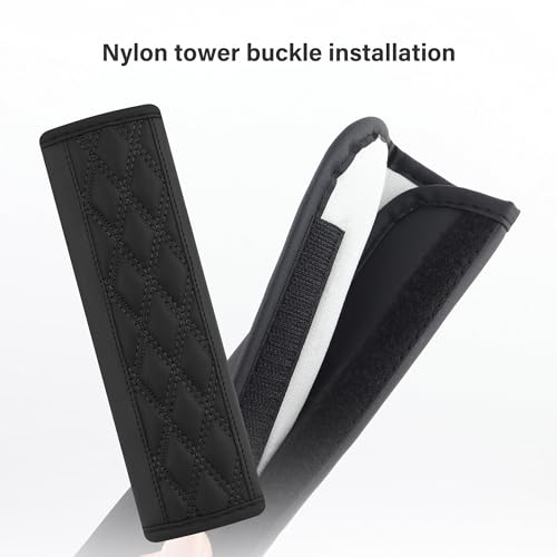 ?? SIMPLE AND VERSATILE: This seatbelt covers are designed with rhombic-shaped stitching pattern, and the simple and versatile style is highly integrated with your car decoration, making your car interior more low-key atmosphere! Meanwhile, you can give this exquisite compact car decoration as a gift to your family and friends, I believe that they will feel warm hearted for it! ?? PREMIUM QUALITY LEATHER: Our car seat shoulder strap pads are made of premium quality leather material, which is soft and wear-resistant and has a long service life. It can effectively protect your seatbelt, reduce wear and tear and cover the original imperfections. And the material is easy to clean, wipe it with water or wash it directly. ?? PRACTICAL FUNCTION: The seat belt cover pad can play a cushioning effect, avoiding the seat belt rubbing and scratching your shoulders and neck, relieving your pressure and fatigue, providing a safer and more comfortable using experience! In addition, the conspicuous presence of the seat belt pads can also help you solve the problem of electronic eyes mistakenly catching you not wearing a seat belt! ?? EASY TO INSTALL AND REMOVE: This car seat belt cover is nylon buckle mounted, easy for you to install and remove at any time. You just need to tear off the nylon buckle, wrap our seat belt cushion to the seat belt and stick it. The nylon buckle is strong and will not come off easily. When you don't need it, just disassemble it and store it, it doesn't take up too much space in the car. ?? UNIVERSAL SEAT BELT COVER PAD: You will receive 2 pieces of car seat strap pads measuring 9.06x2.76x0.79 inches for the main and passenger seats. We have prepared 4 stylish and exquisite colors for you, you can choose according to your preference. And it is universal for most cars, trucks, SUVs, RVs, vans on the market, with a wide range of applications.