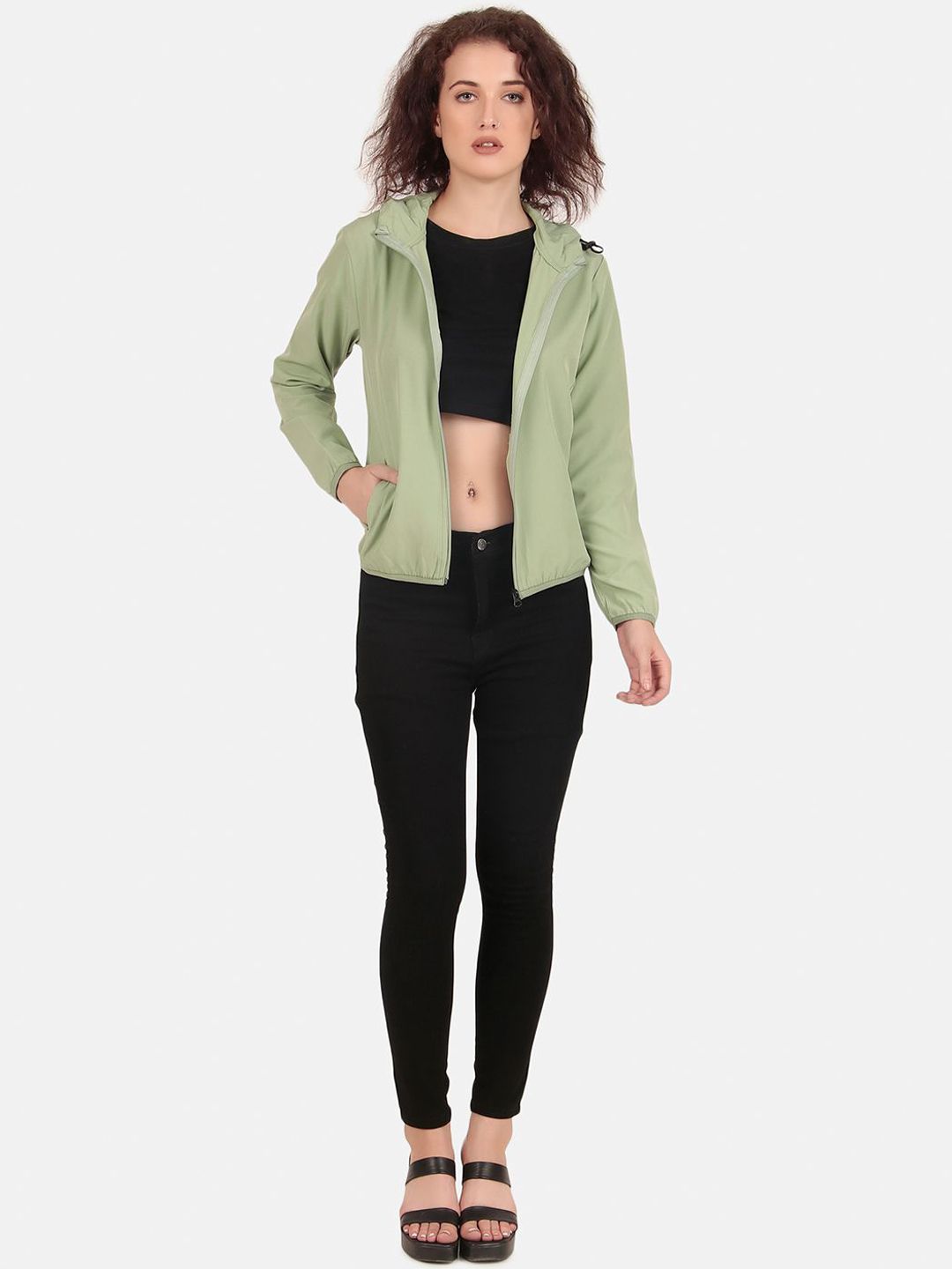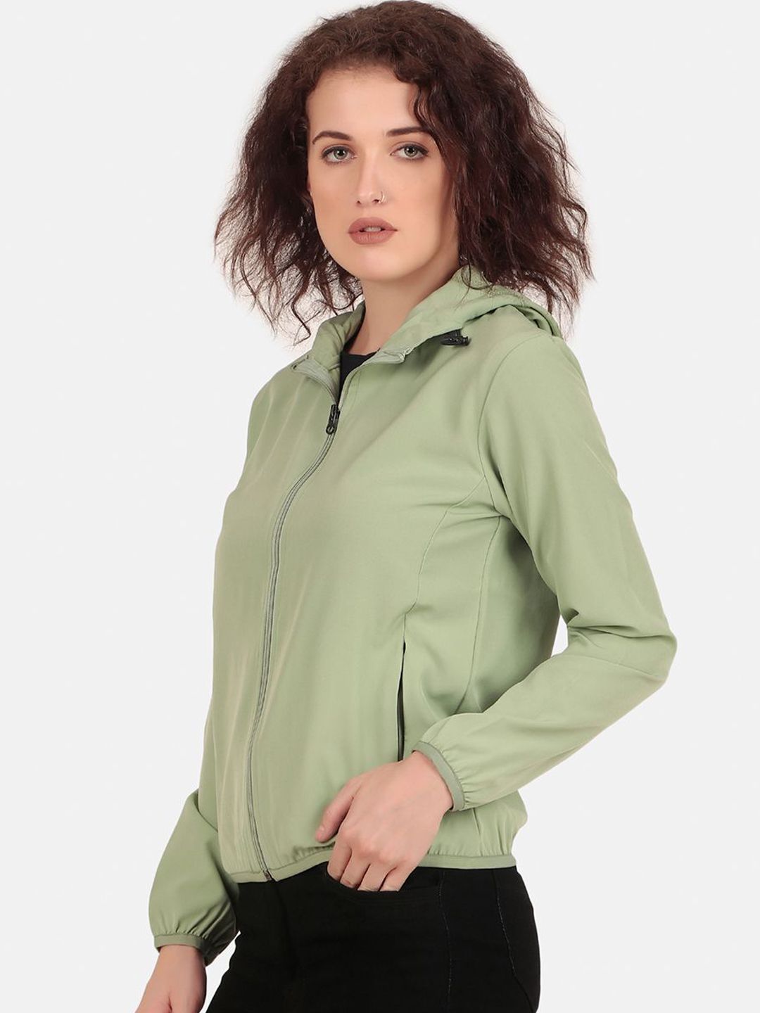 WELL QUALITY Women Hooded Solid Windcheater Bomber Jacket