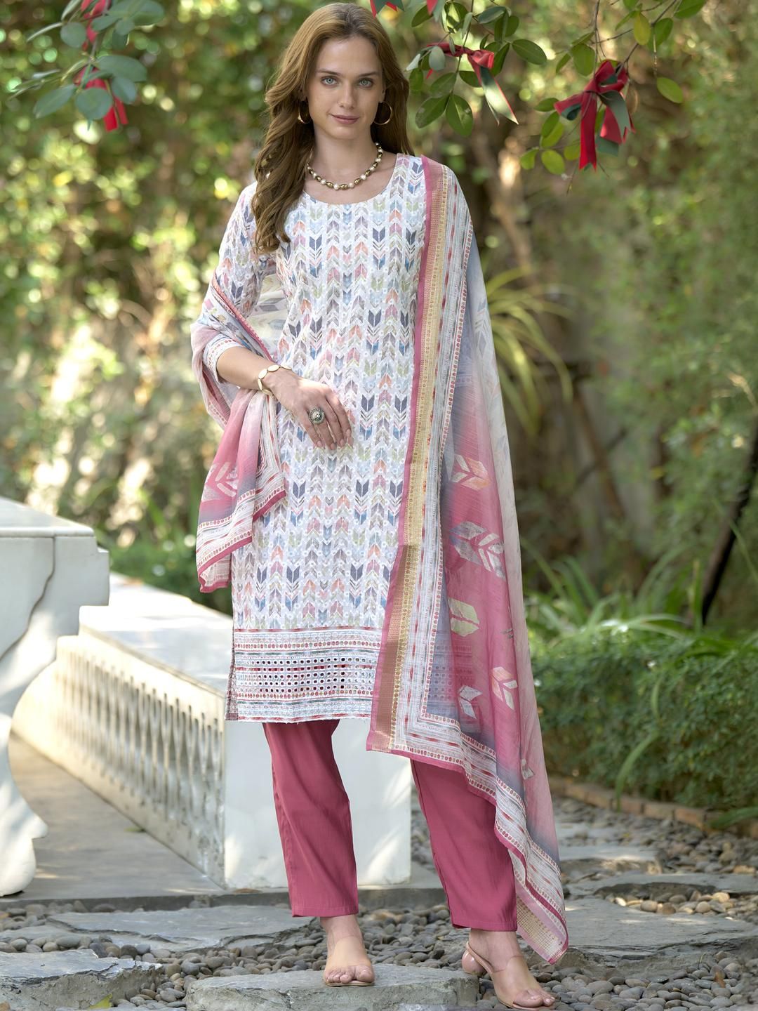 Buy this stylish White Floral Printed Cotton Kurta Set with Embroidered Neck & Linen Dupatta at Marincart Nepal. This product offers great quality and value. Perfect for those looking for the latest trends in fashion. Get yours now at unbeatable prices.