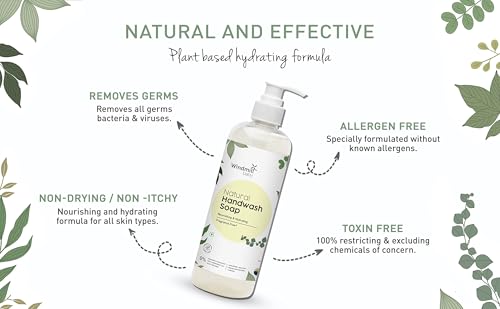 Windmill Natural Hand Wash for Dry Skin, Fragrance Free, USDA Certified, Moisturizing, Hypoallergenic, Hydrating, For All Skin Types and Ages - 450ml