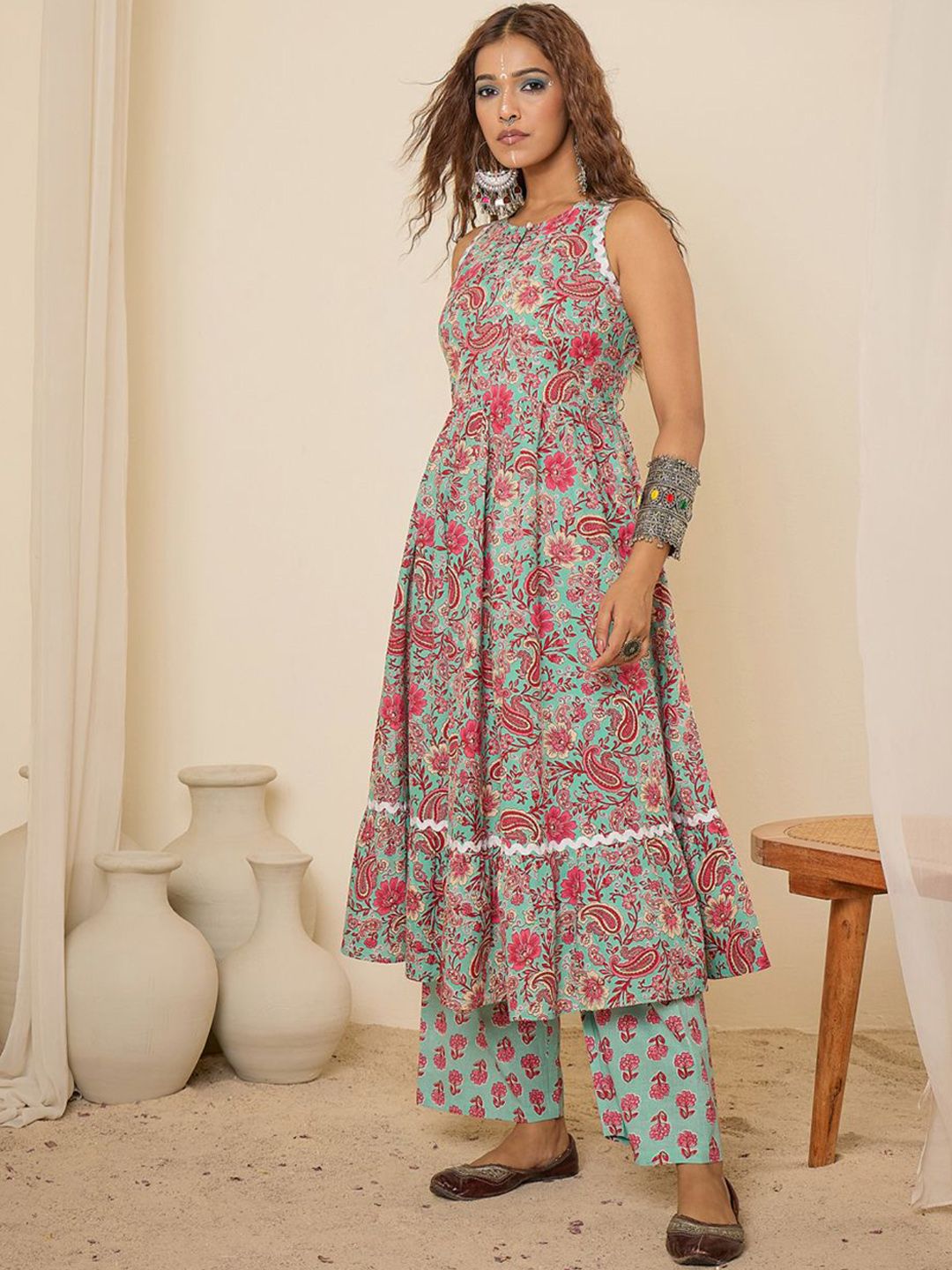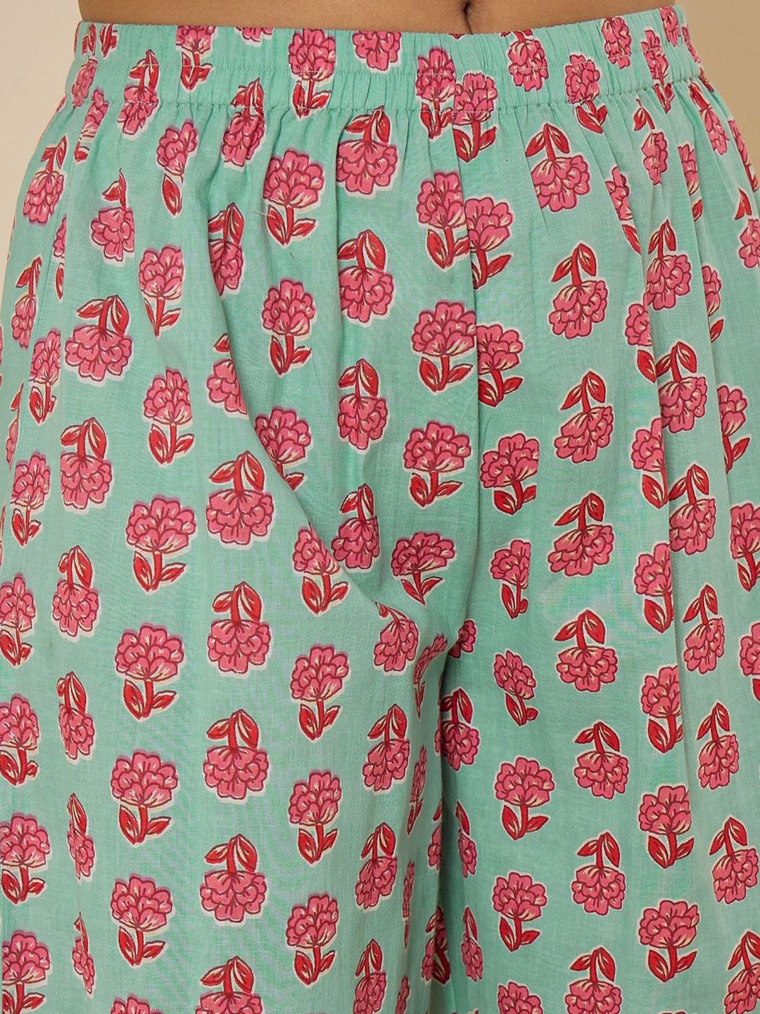 WineRed Women Floral Printed Cotton Kurta with Trousers