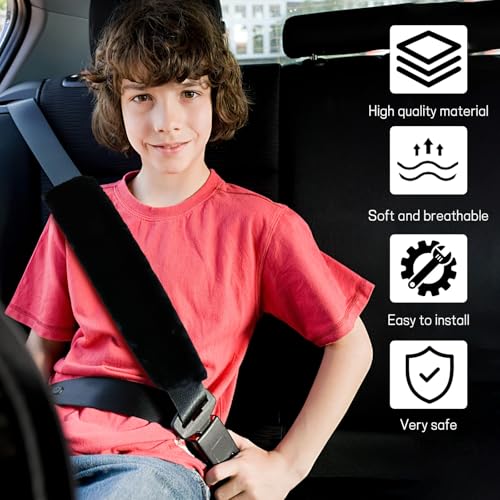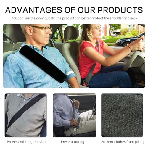 ?Soft and Comfortable?: This car seatbelt cover is so soft and warm that it will protect your shoulders and clothes from the chafing and irritation of the seatbelt, keeping your neck comfortable, which in turn will make your driving easier while encouraging kids to buckle up. ?Premium Quality Material?: Our seatbelt shoulder pads are made of smooth short pile faux sheepskin fabric. It is soft and skin-friendly, colorfast, lint-free, odorless and harmless to the skin. The soft and comfortable feeling can make your driving experience more relaxing. ?Easy Installation?: The car seatbelt protector can be easily installed without the use of tools. It comes with durable magic stickers, you just need to open it, then fold it over the seat belt and close it. The whole process is simple and can be installed in seconds. ?Universal Design?: This seat belt pad can be used for car, truck, SUV, airplane, bus and train seat belts. It can also be used for backpacks, handbags, cameras, laptop bags, baby diaper bags, golf bags, suitcases with shoulder straps, or any other type of duffel bag for a wide range of uses. ?You Will Get?: Package Includes 2 Seat Belt Covers. Our car seatbelt shoulder pads are simple and fashionable in design, with a variety of colors for you to choose. You can choose the right color to add style to your car's interior while it protects you from harm.