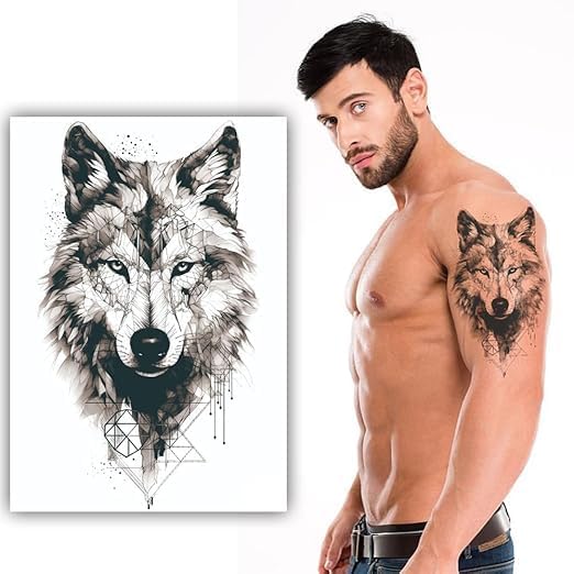 Wolf Printed Temporary Tattoo, Set of 2, 22 cm x 15 cm
