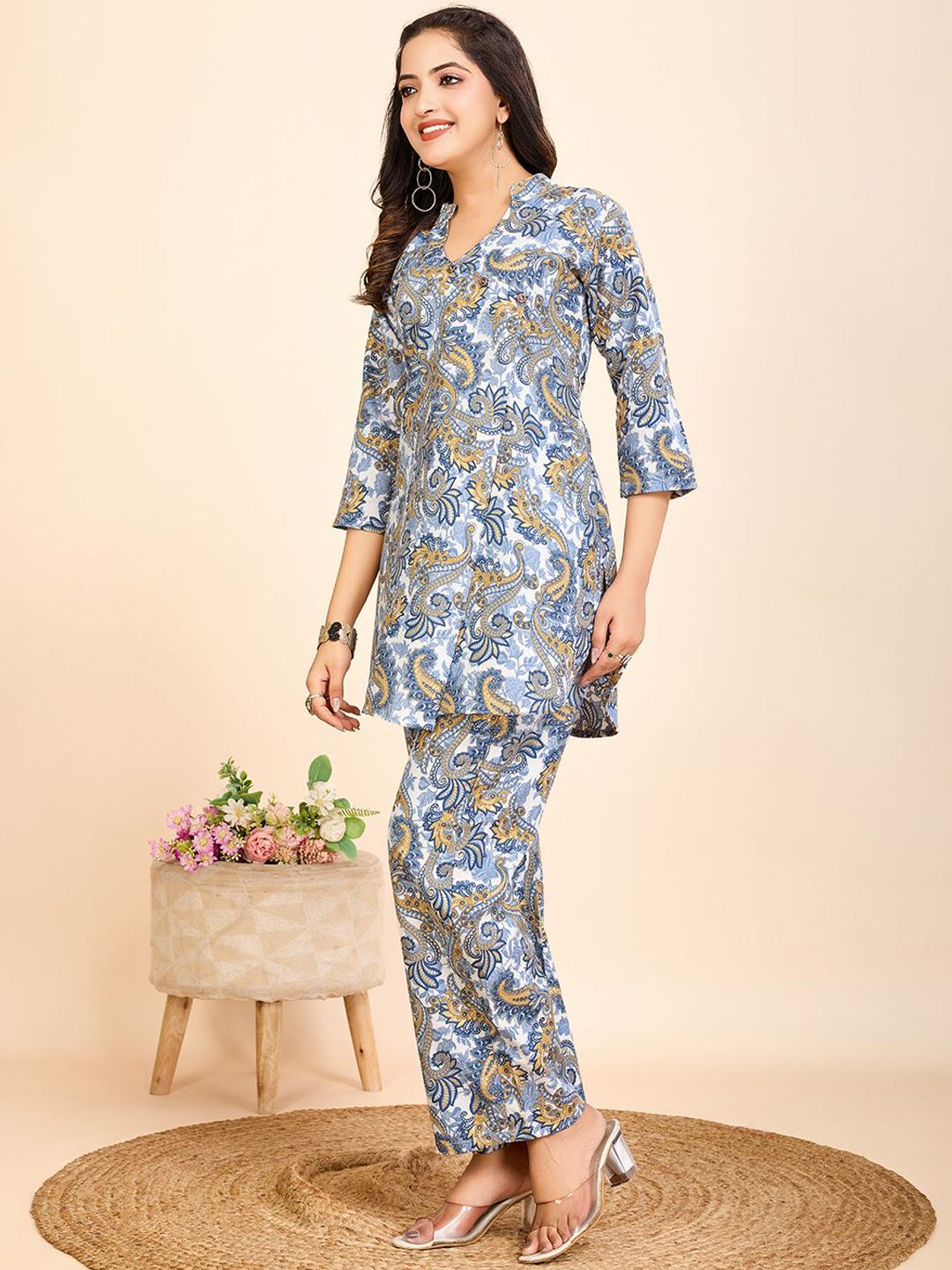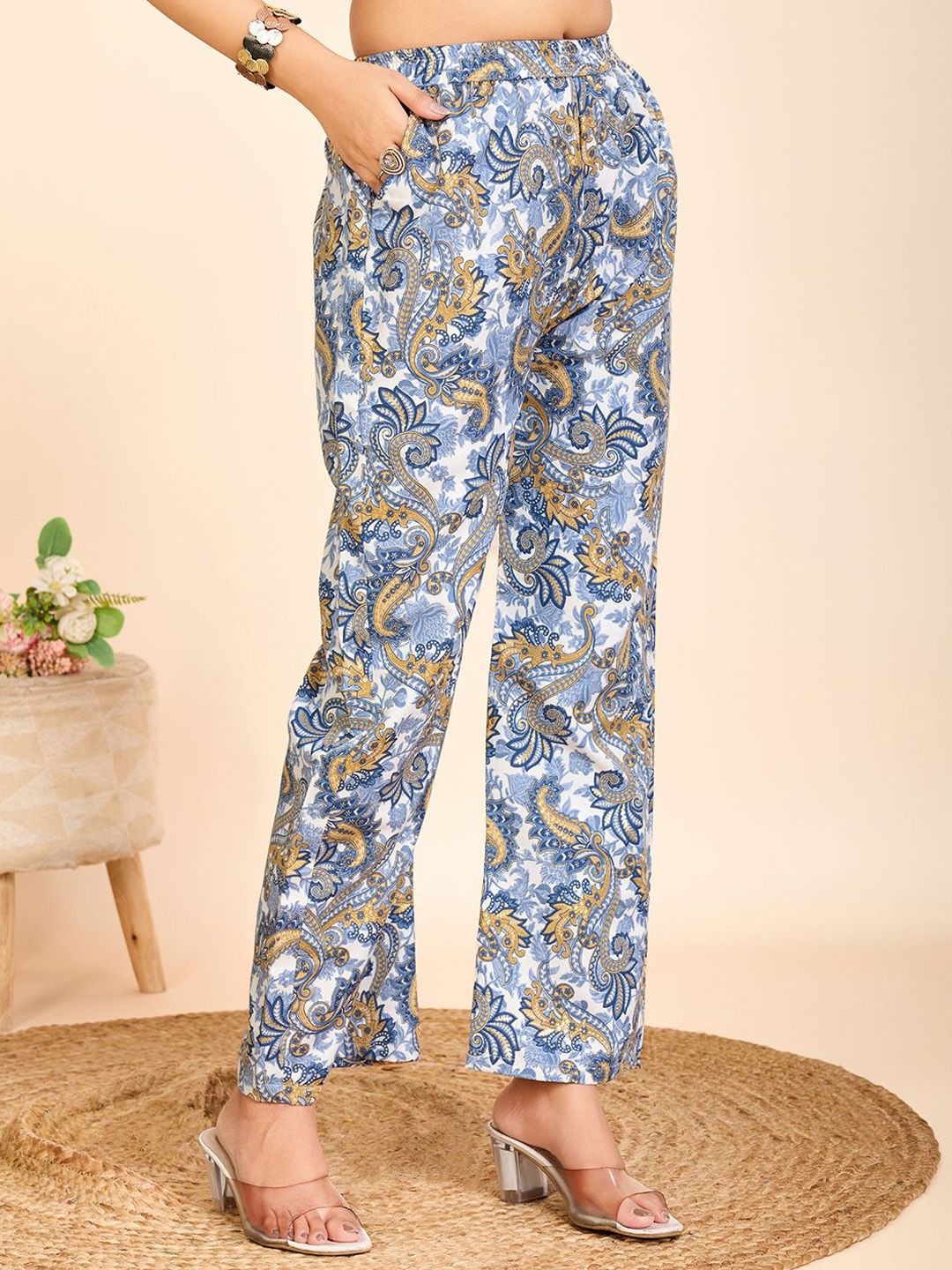 Women Basket Floral Printed Mandarin Collar Straight Kurti With Trousers