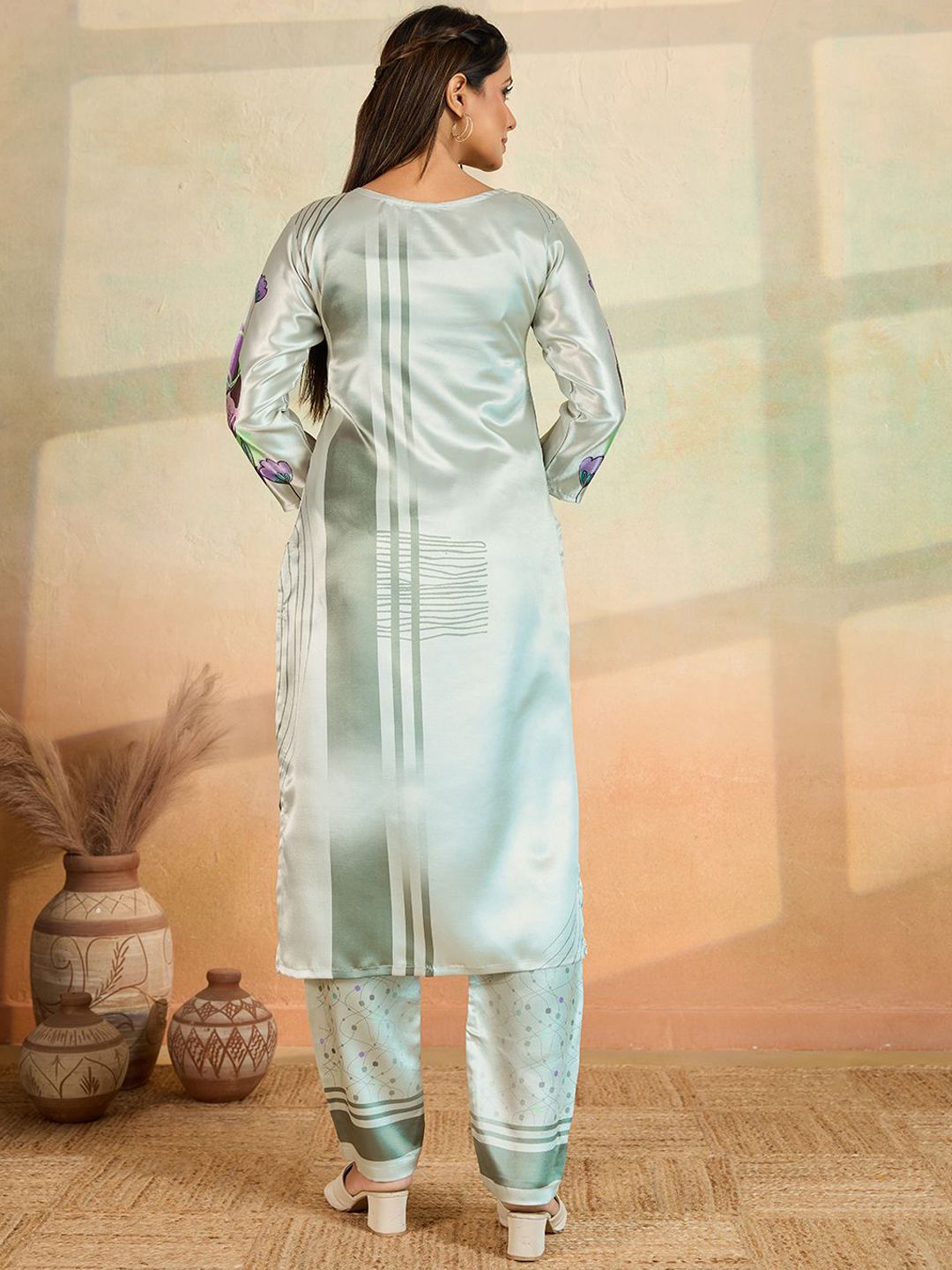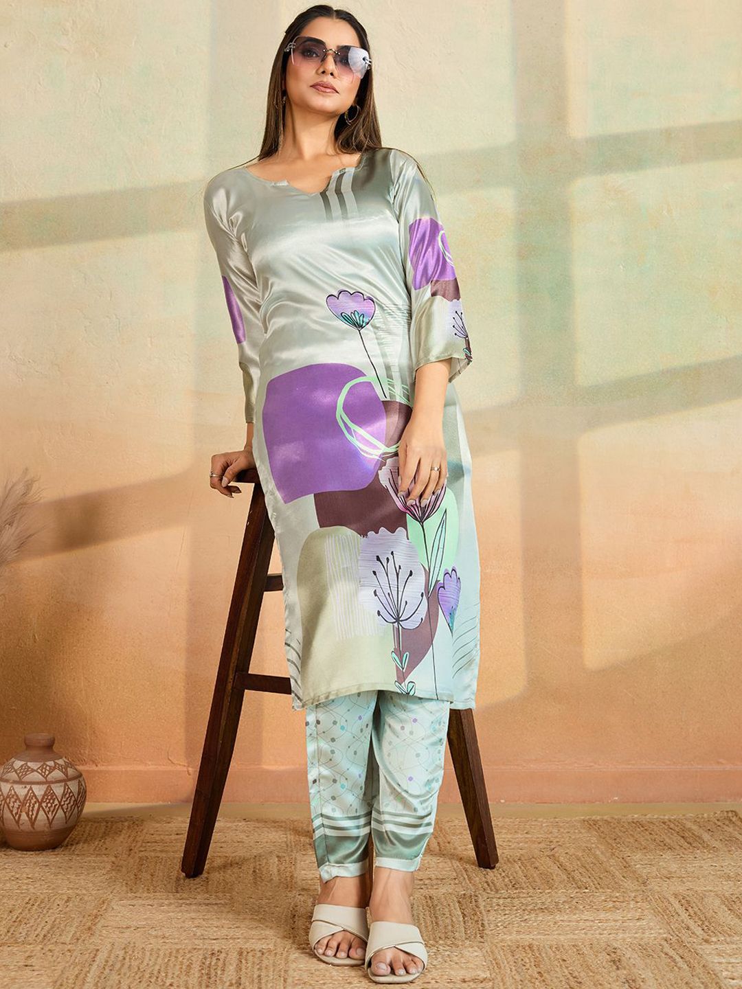 Women Basket Floral Printed Notch Neck Straight Kurta With Trousers