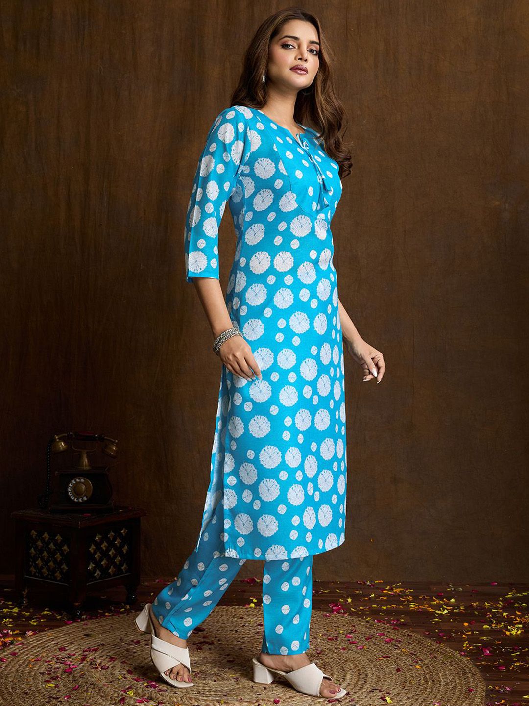 Women Basket Floral Printed Pure Cotton Notch Neck Straight Kurta With Trousers