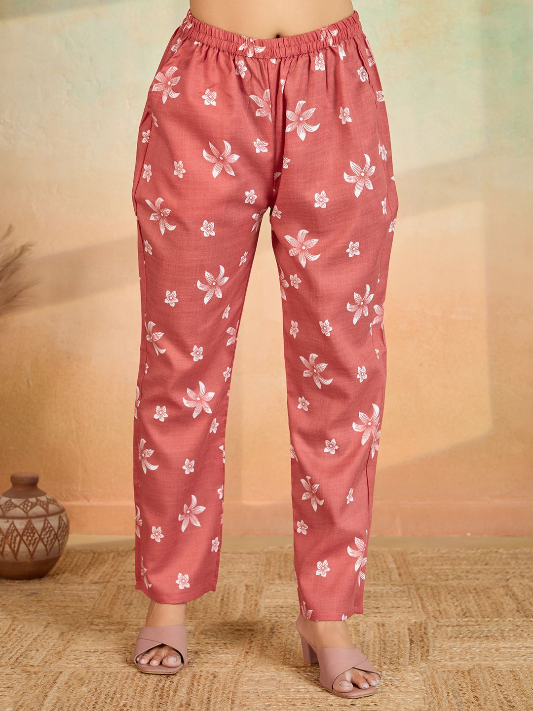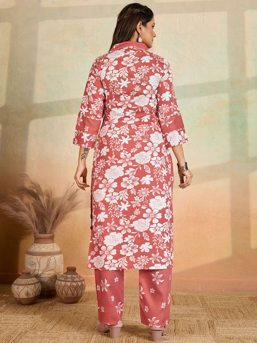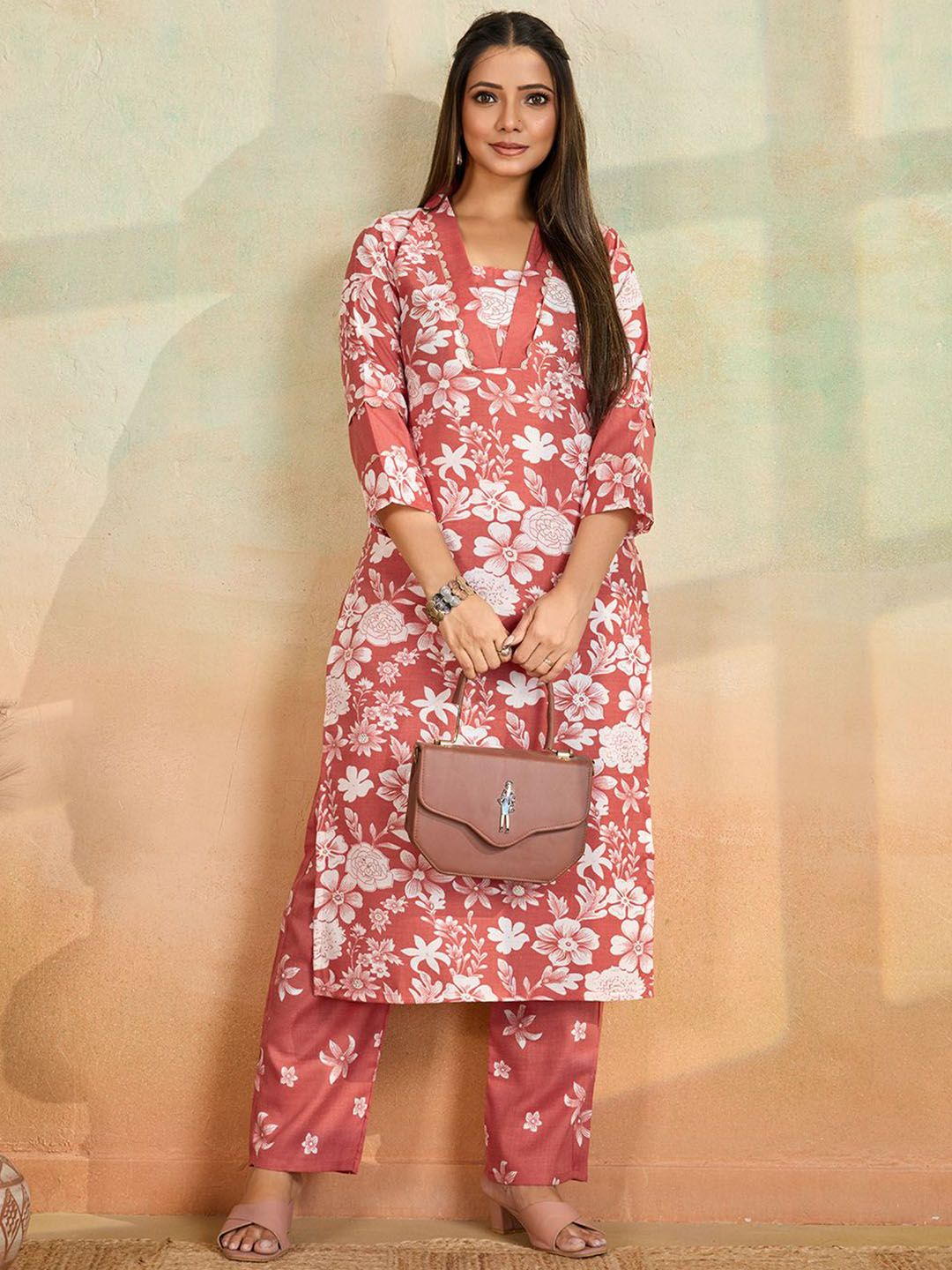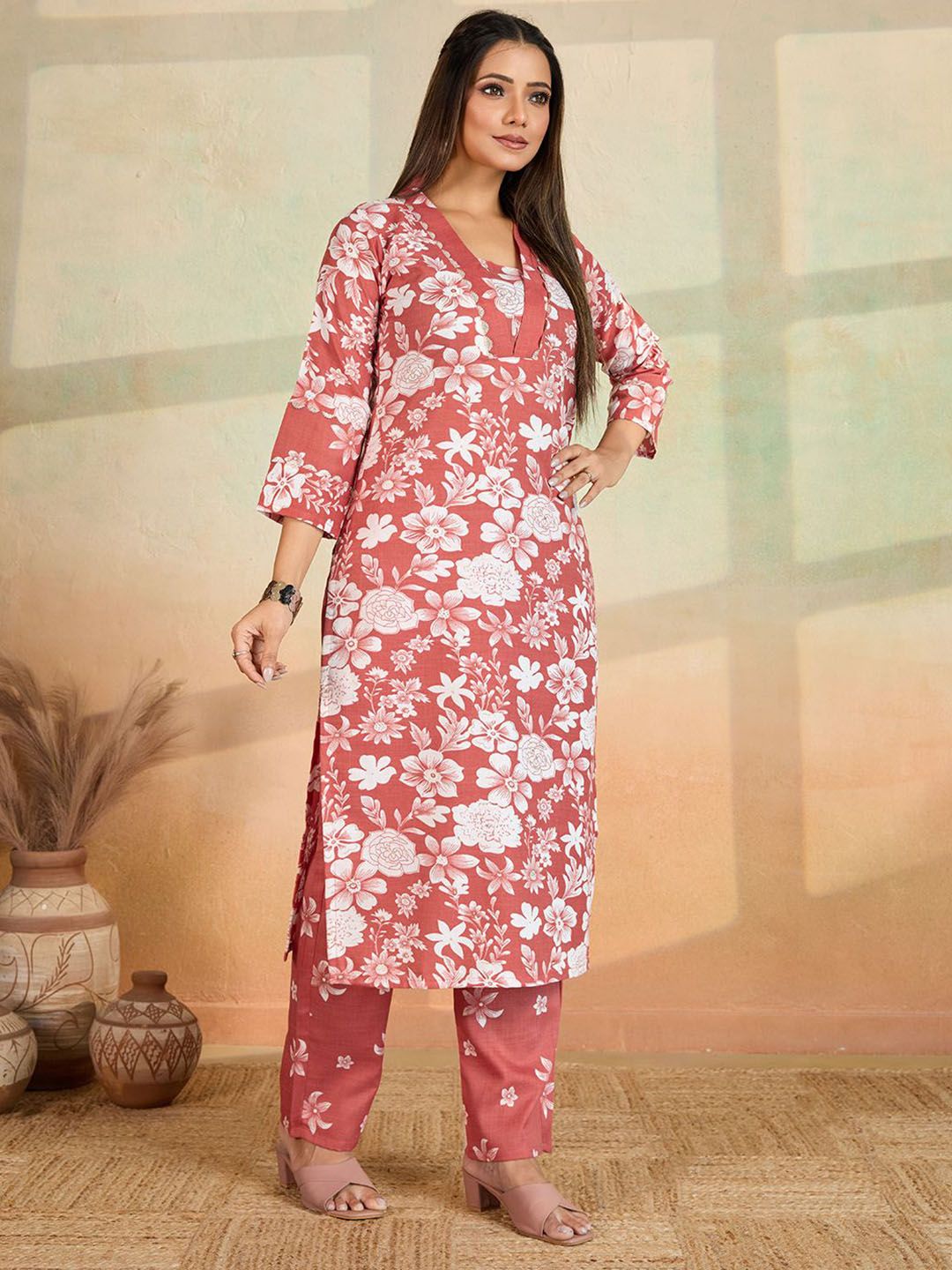 Women Basket Floral Printed V Neck Straight Kurta With Trousers