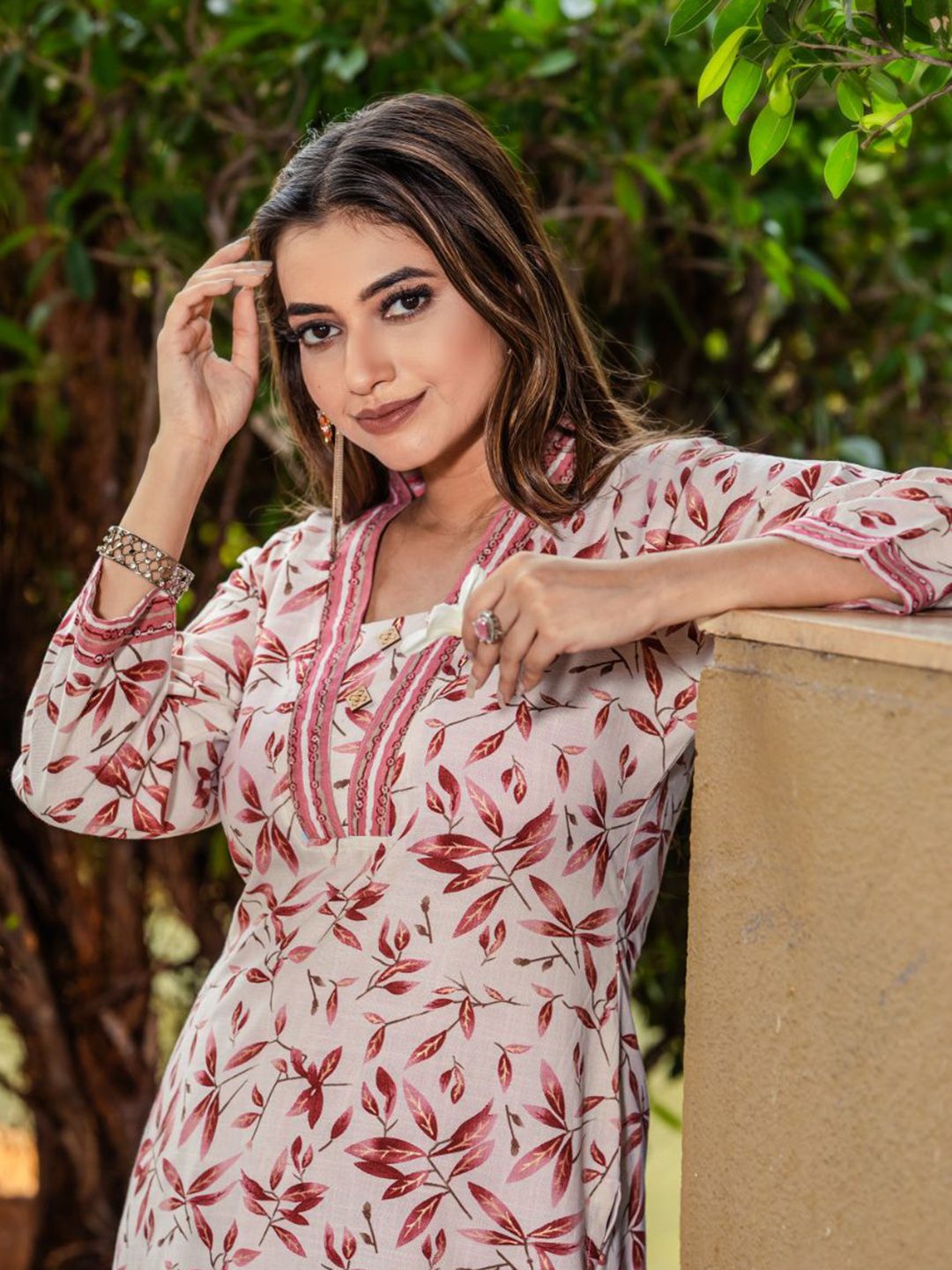 Women Basket Floral Printed V-Neck Straight Kurta With Trousers