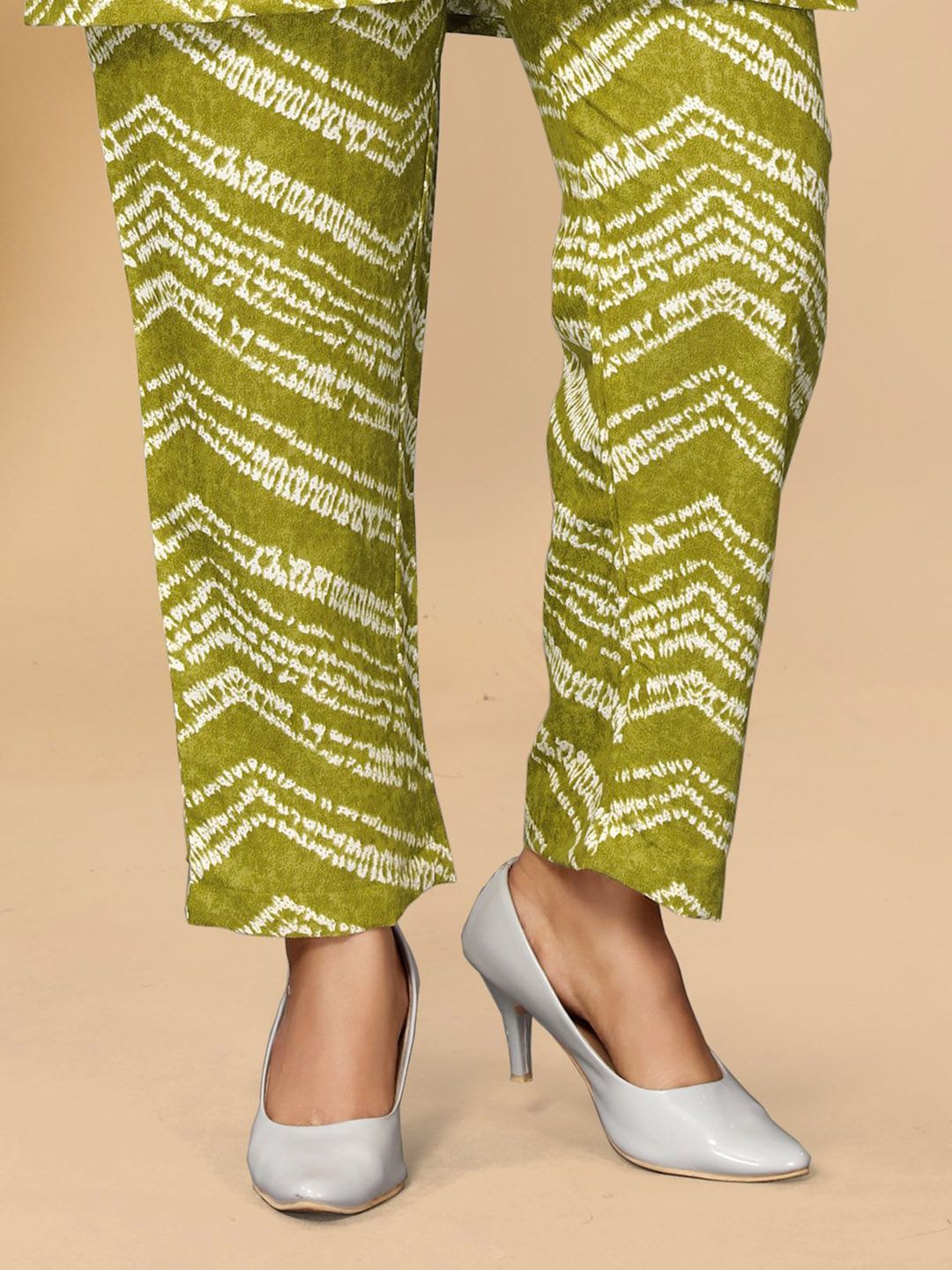 Women Basket Printed Mandarin Collar A-line Kurta With Trousers