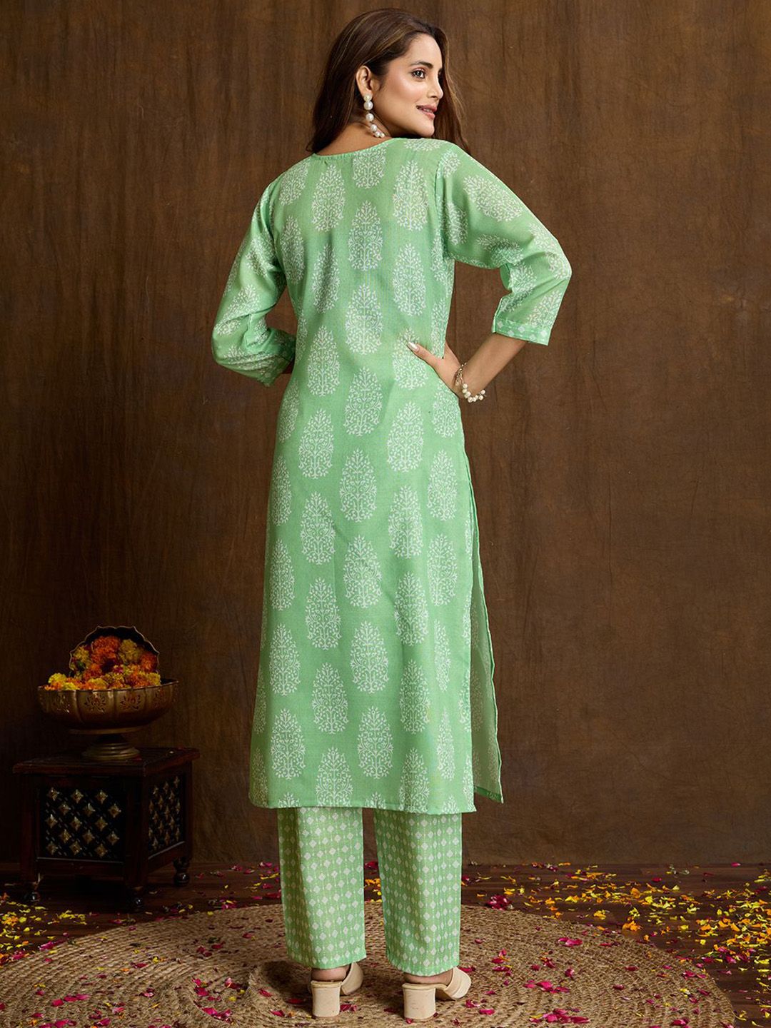 Women Basket Women Ethnic Motifs Printed Pure Cotton Kurta with Trousers Kurta Sets