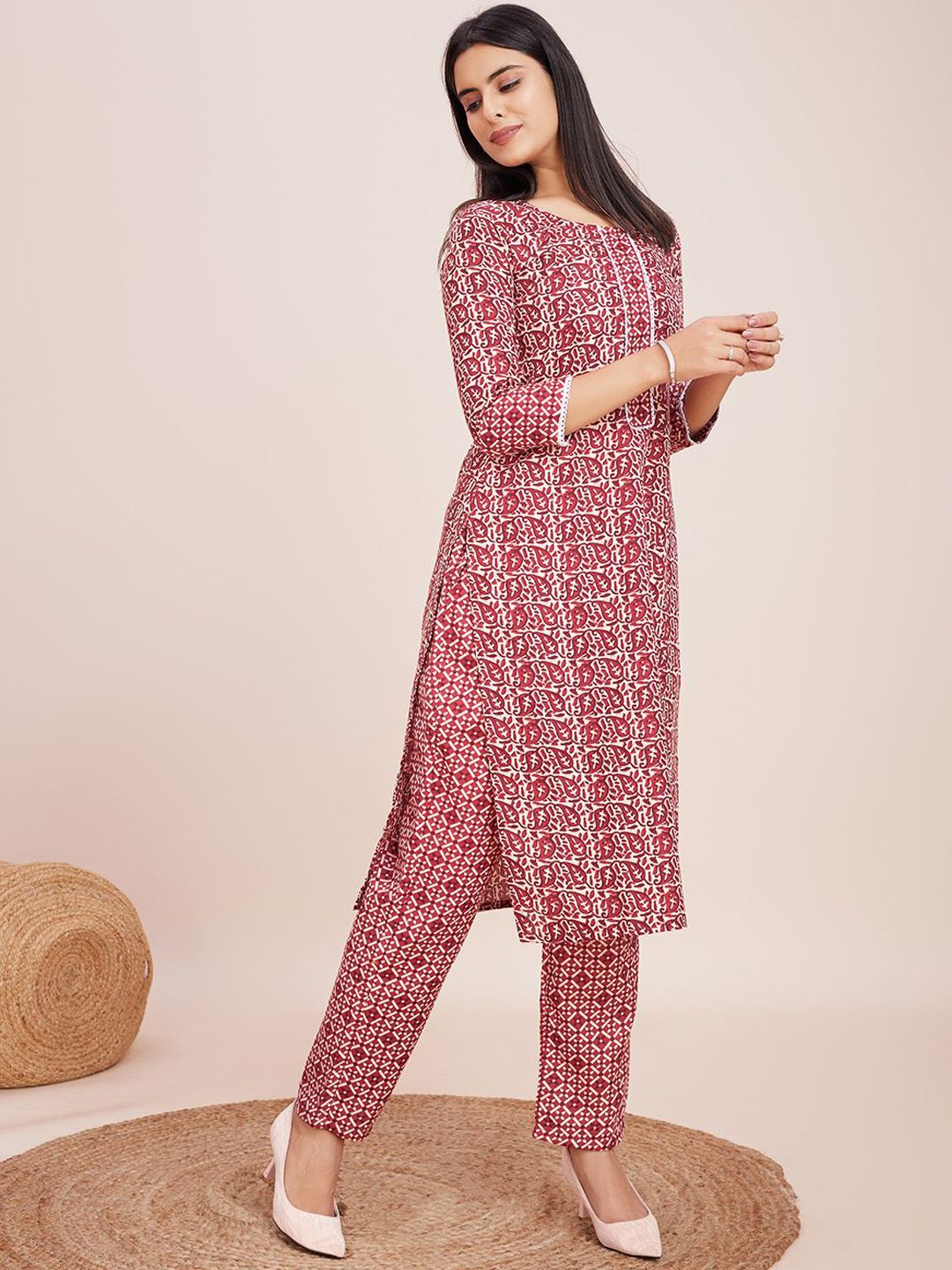 Women Basket Women Ethnic Motifs Printed Regular Straight Kurta with Trousers