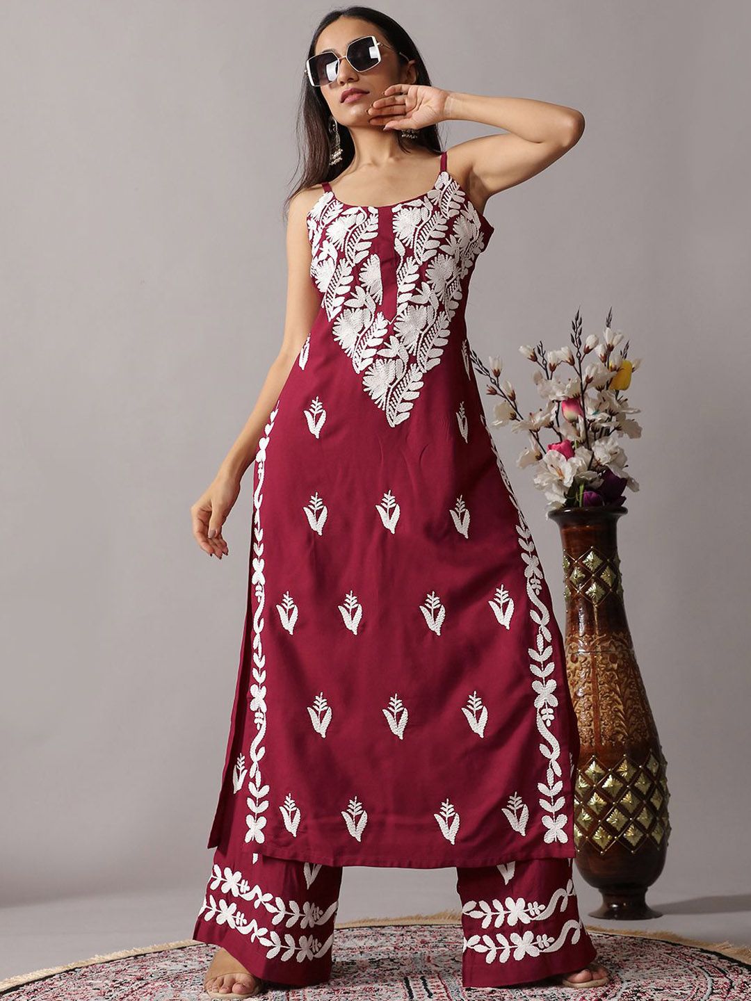 Women Ethnic Motifs Embroidered Kurta with Palazzos