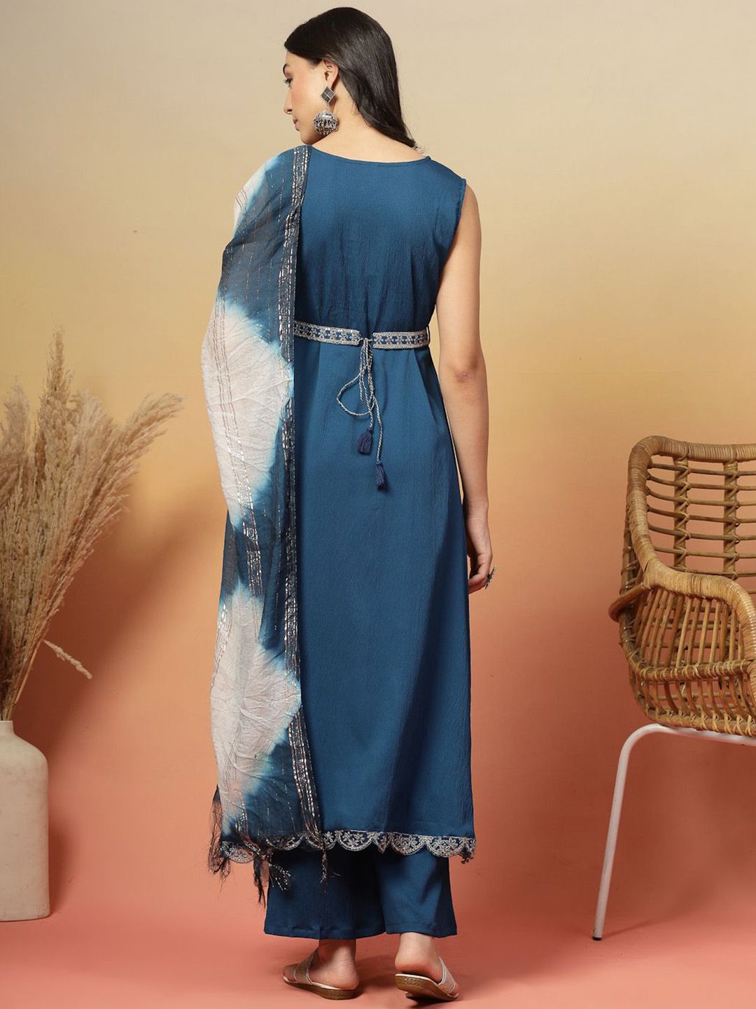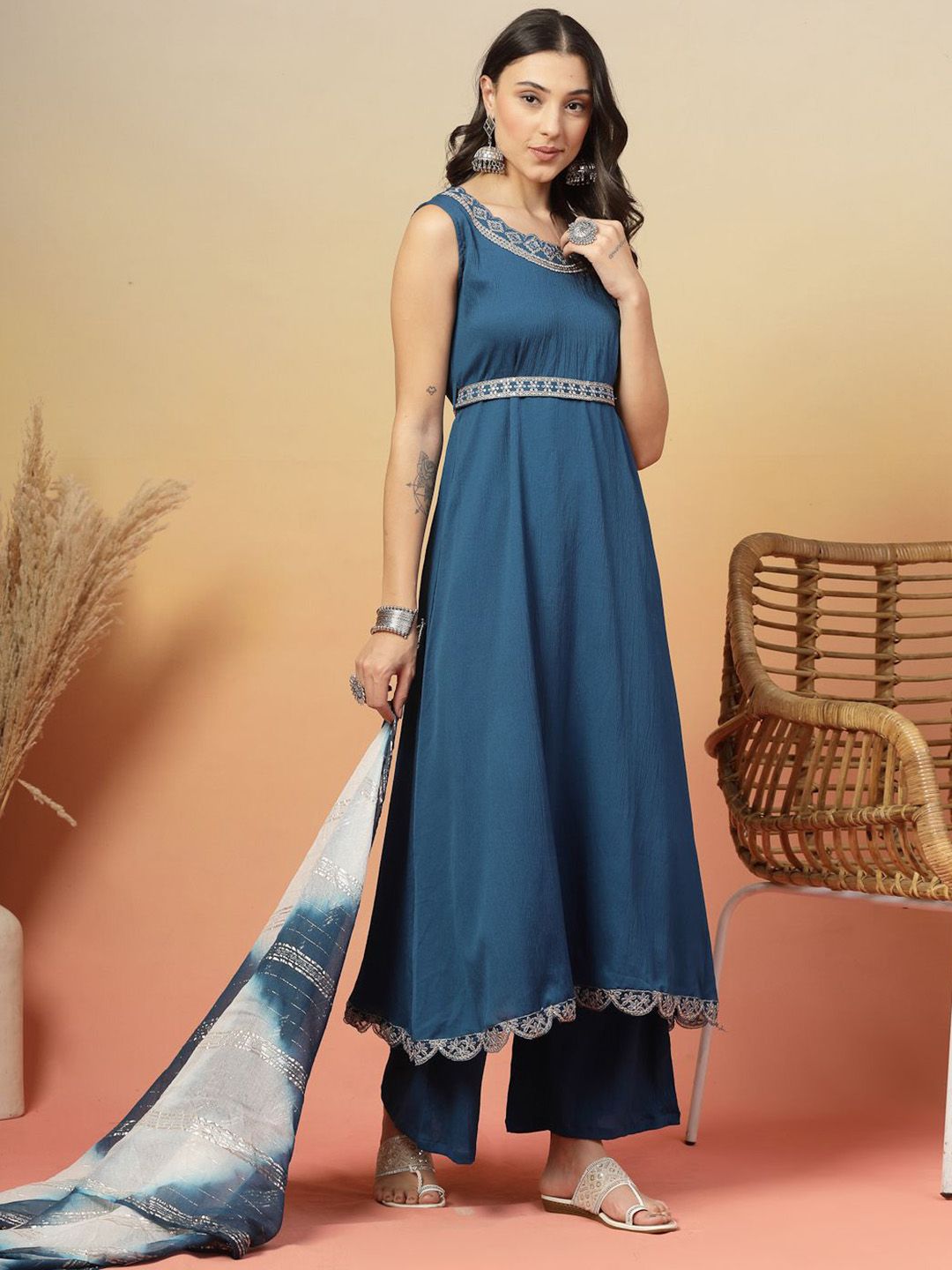 Women Solid A-Line Kurta with Palazzos & Dupatta